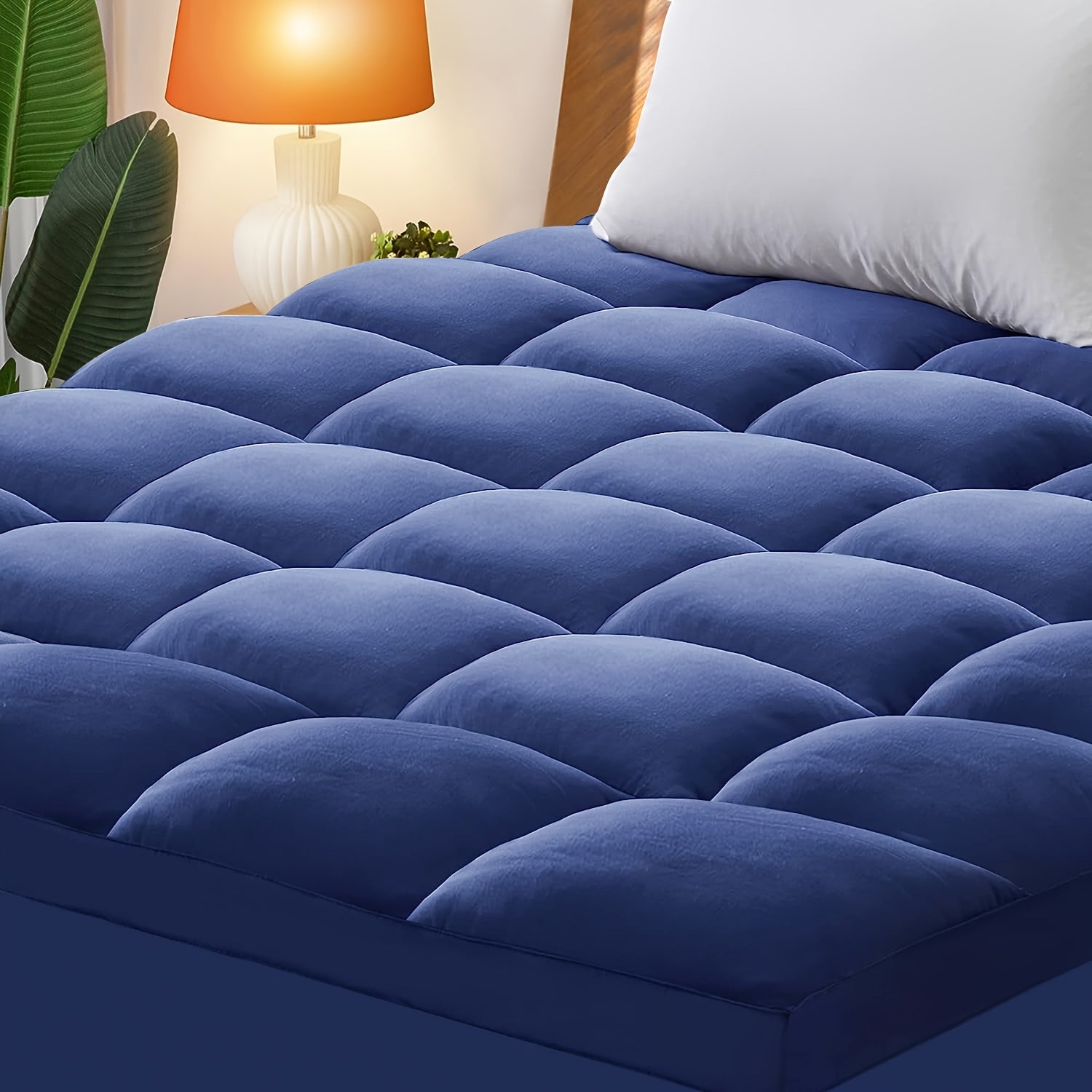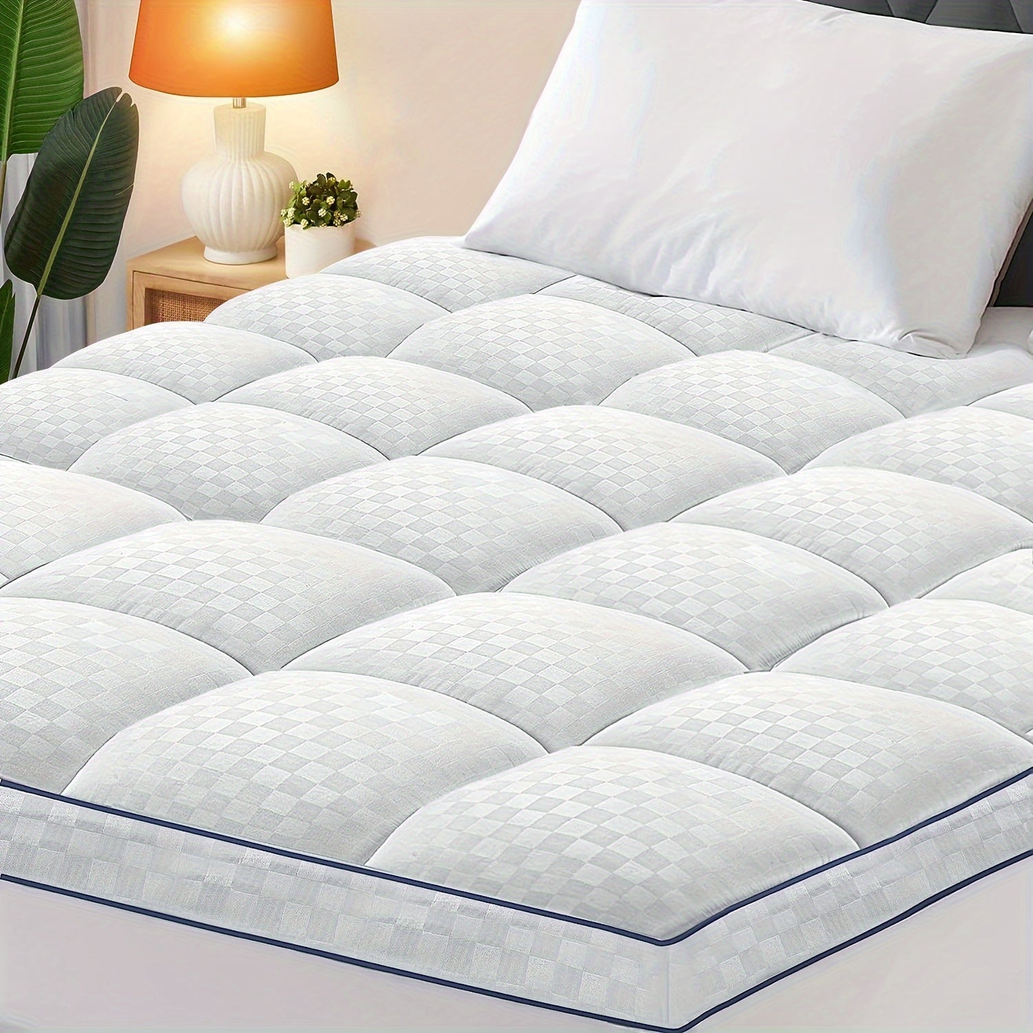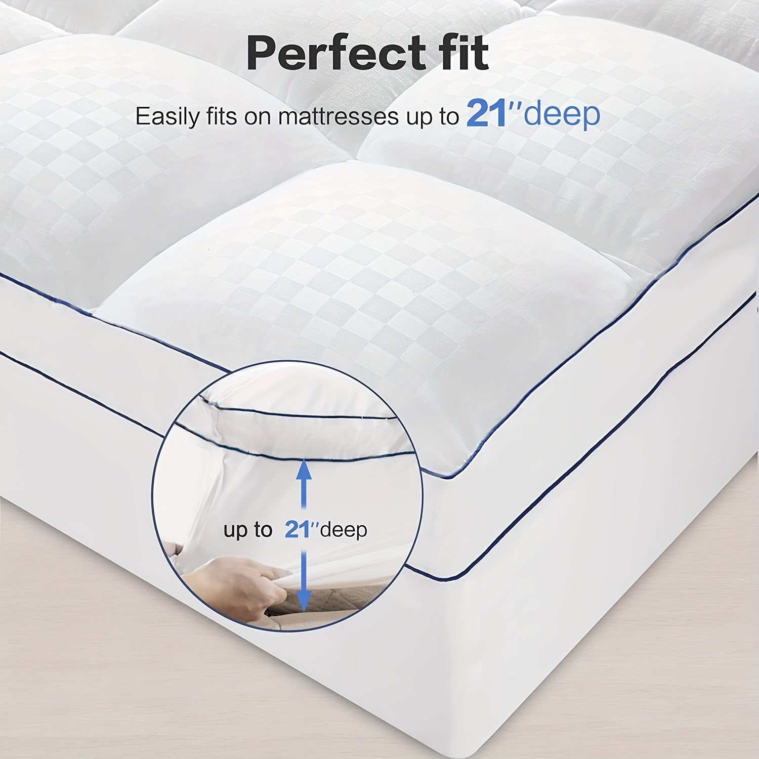 Extra grueso y de apoyo: la sobrecolchón TopTopper está fabricada con fibra virgen sobrellenada (50% 3D + 50% 7D), la fibra más avanzada en relleno de tela virgen, para garantizar la comodidad y el grosor del sobrecolchón. Con un grosor de 2 pulgadas, proporciona un soporte suficiente para el cuerpo, permitiéndote sentirte lleno de energía cada mañana al despertar. En comparación con los sobrecolchones tradicionales, utiliza terciopelo 3D en lugar de acolchado para dispersar el peso del cuerpo y prevenir hundimientos.