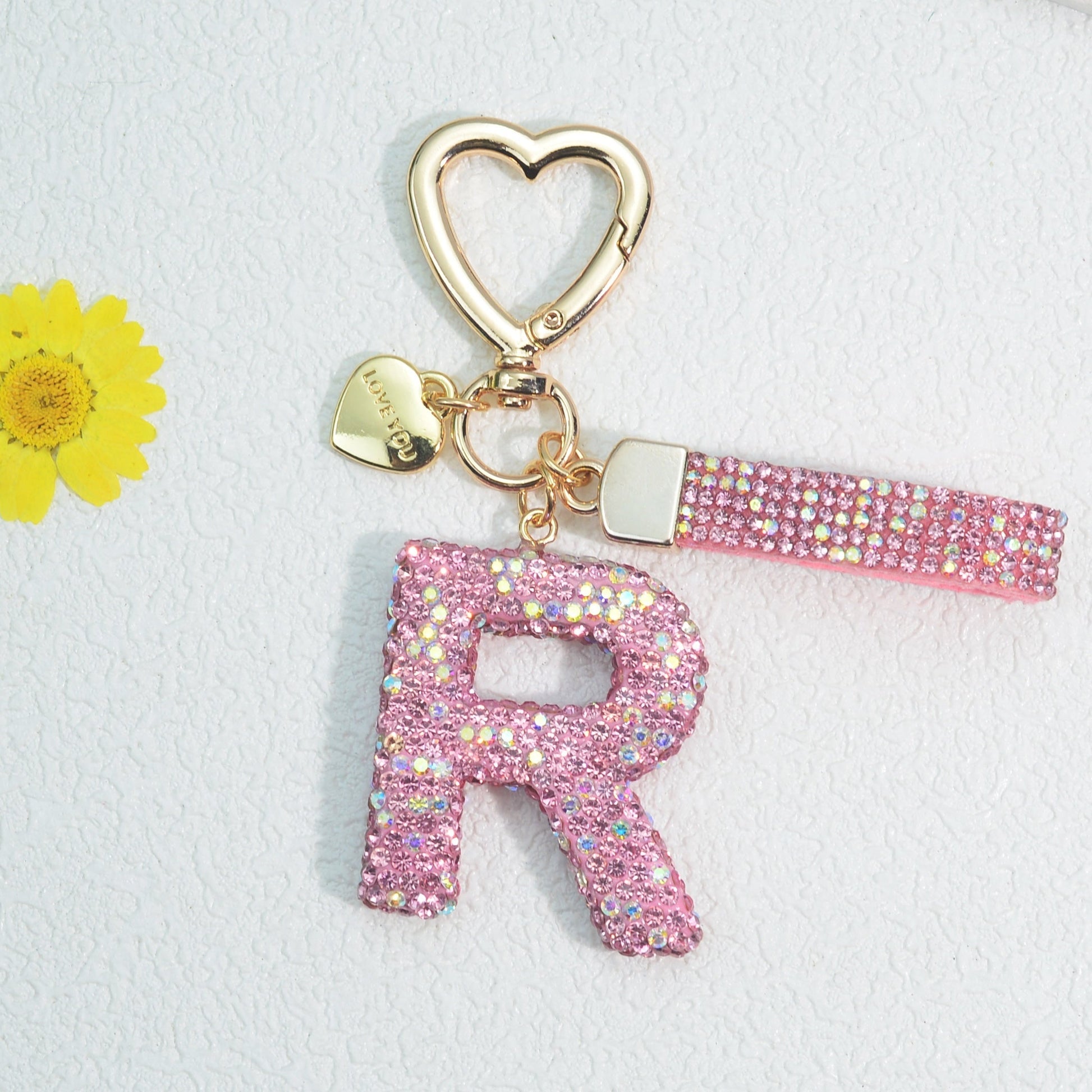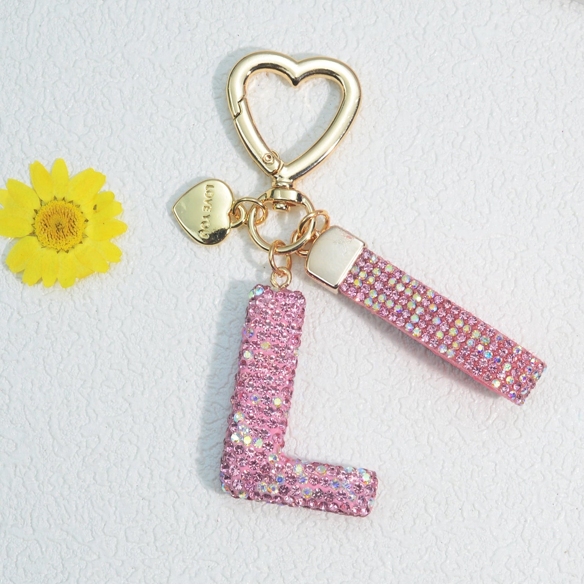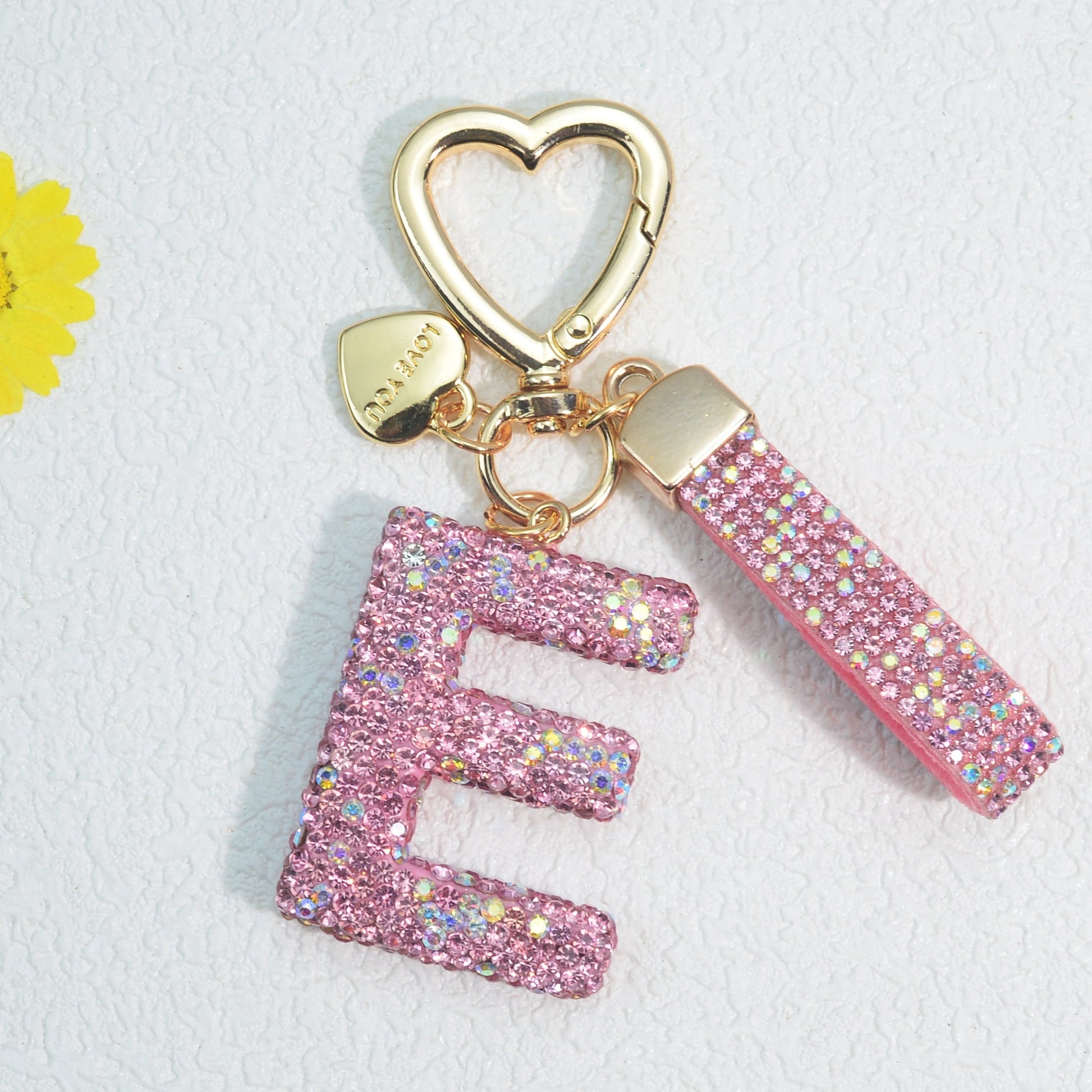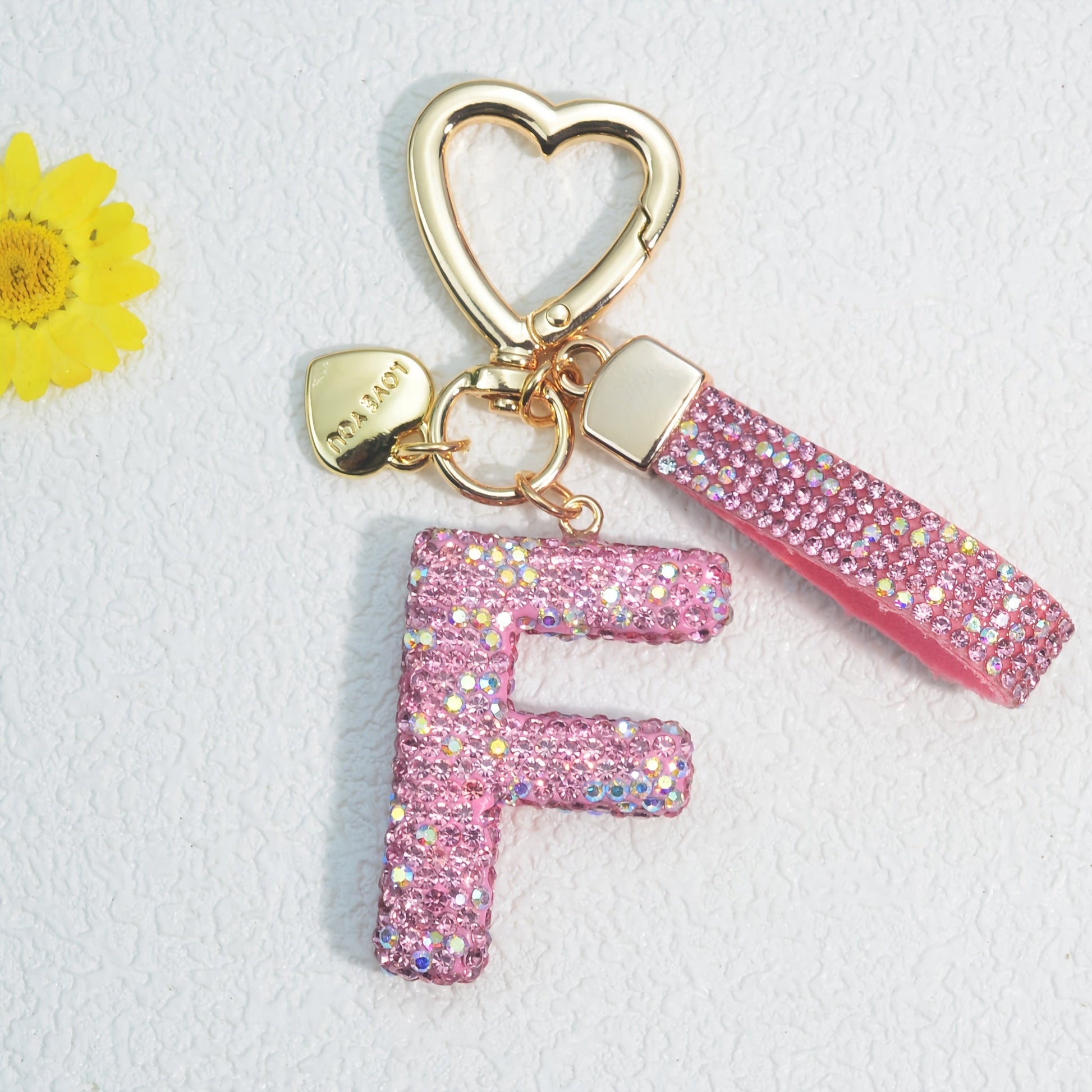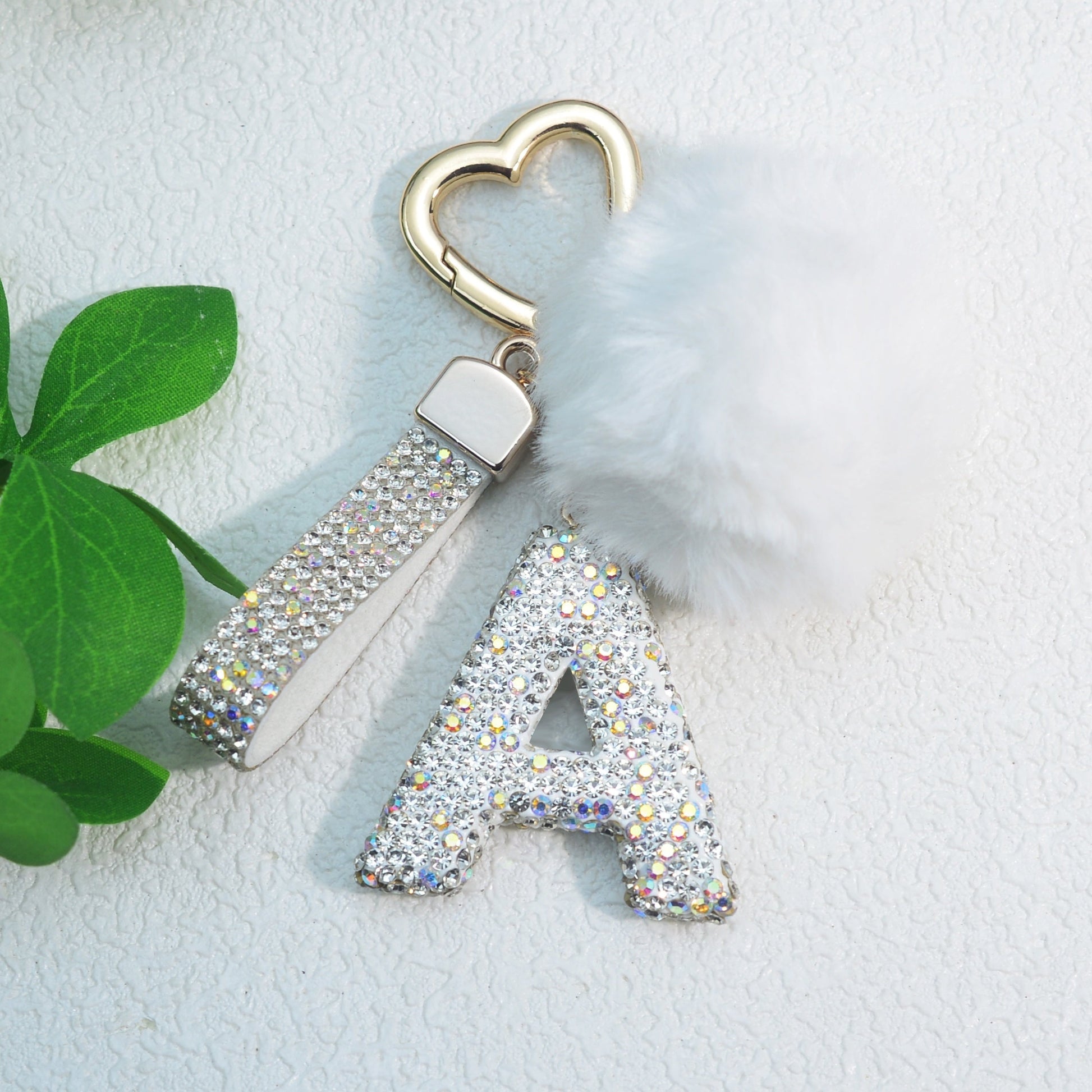 Llavero de PVC con iniciales de pedrería rosa y blanca con cierre de puño para mujeres