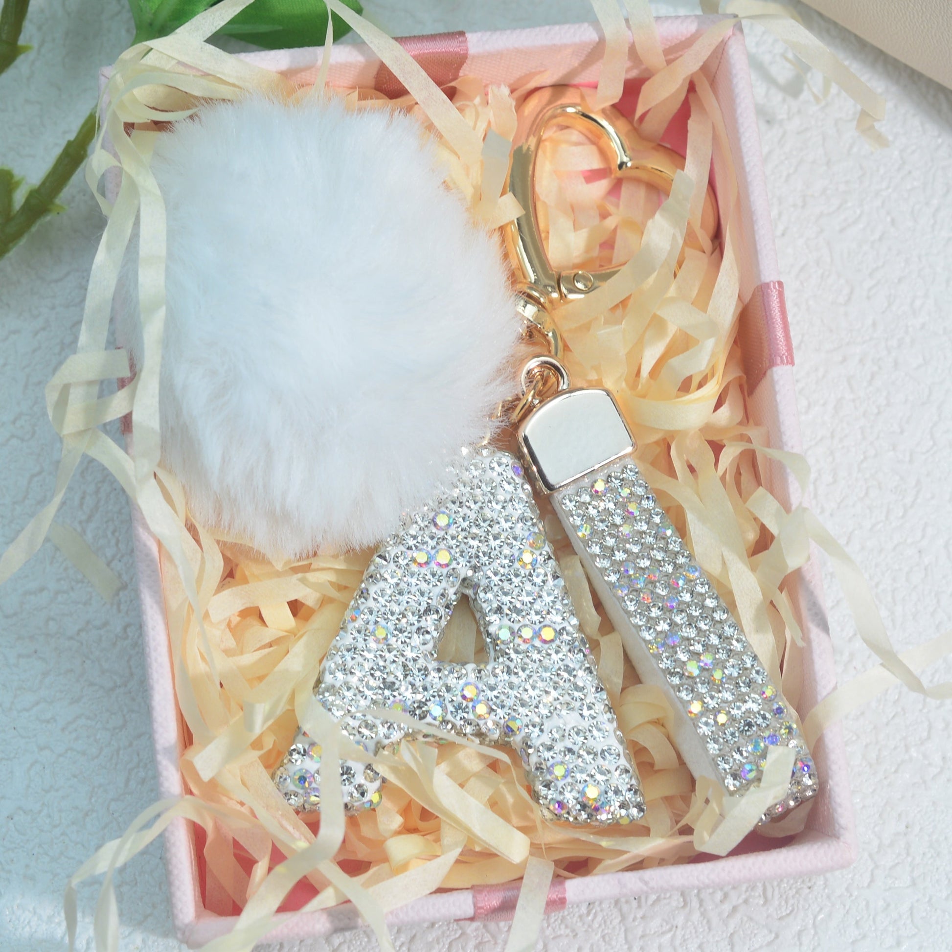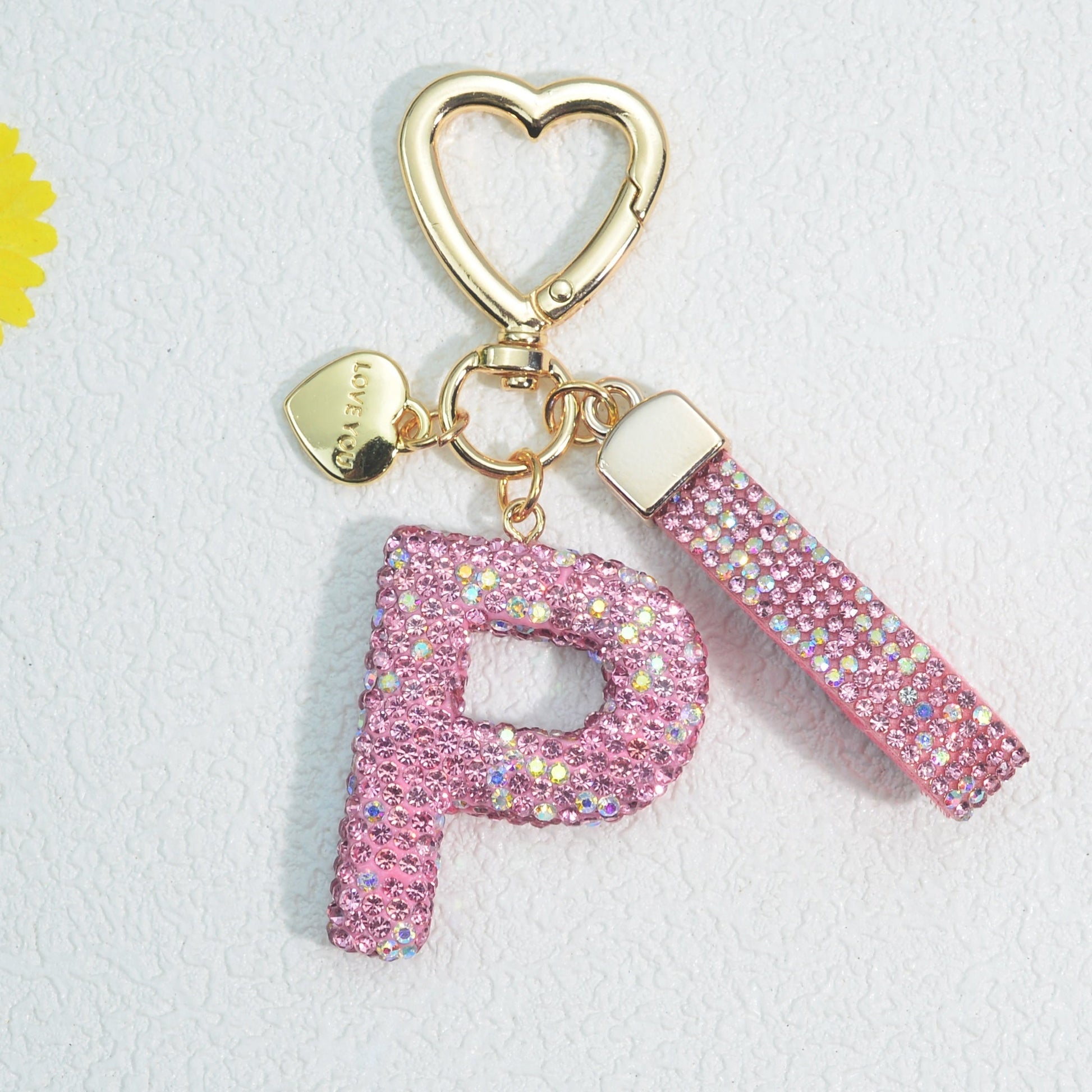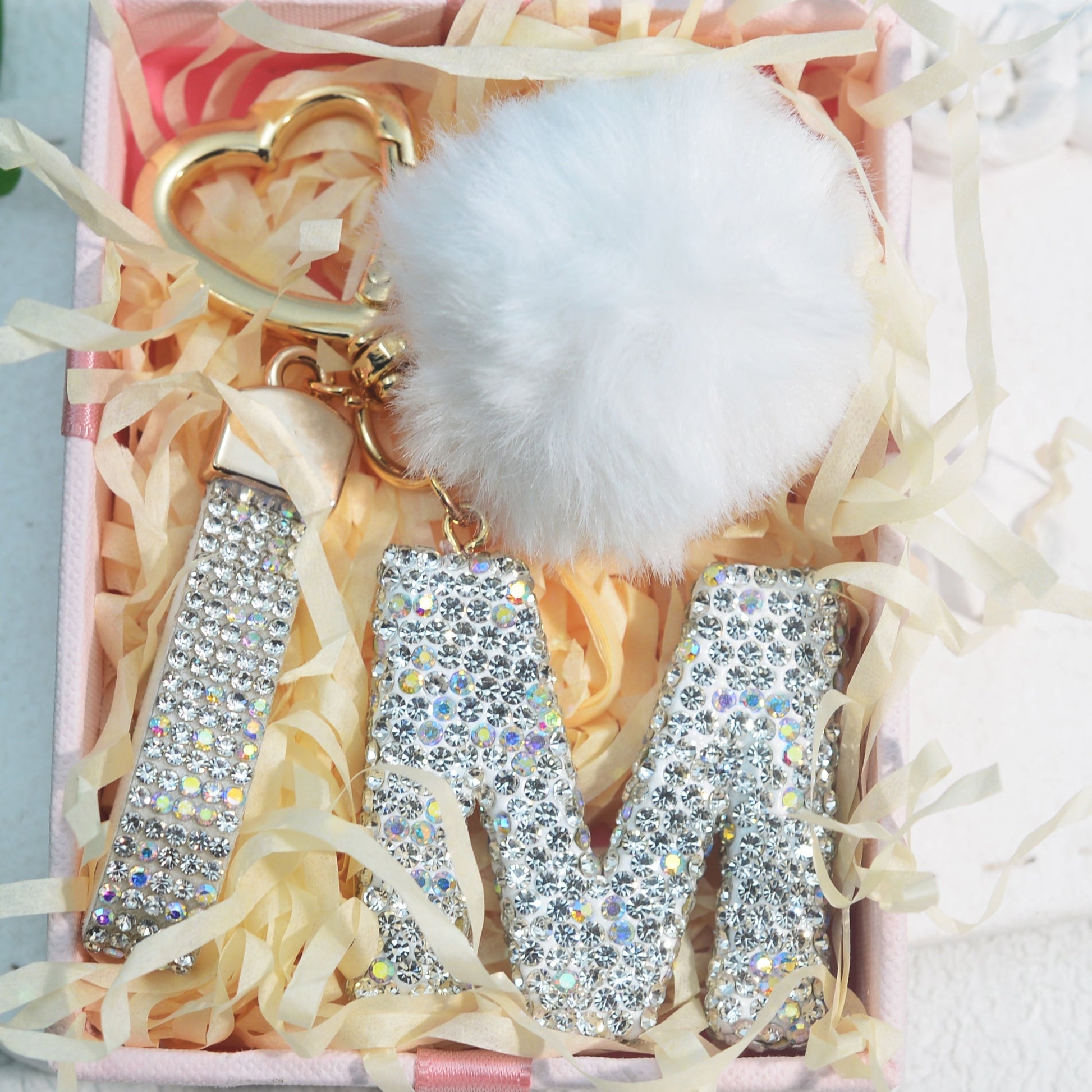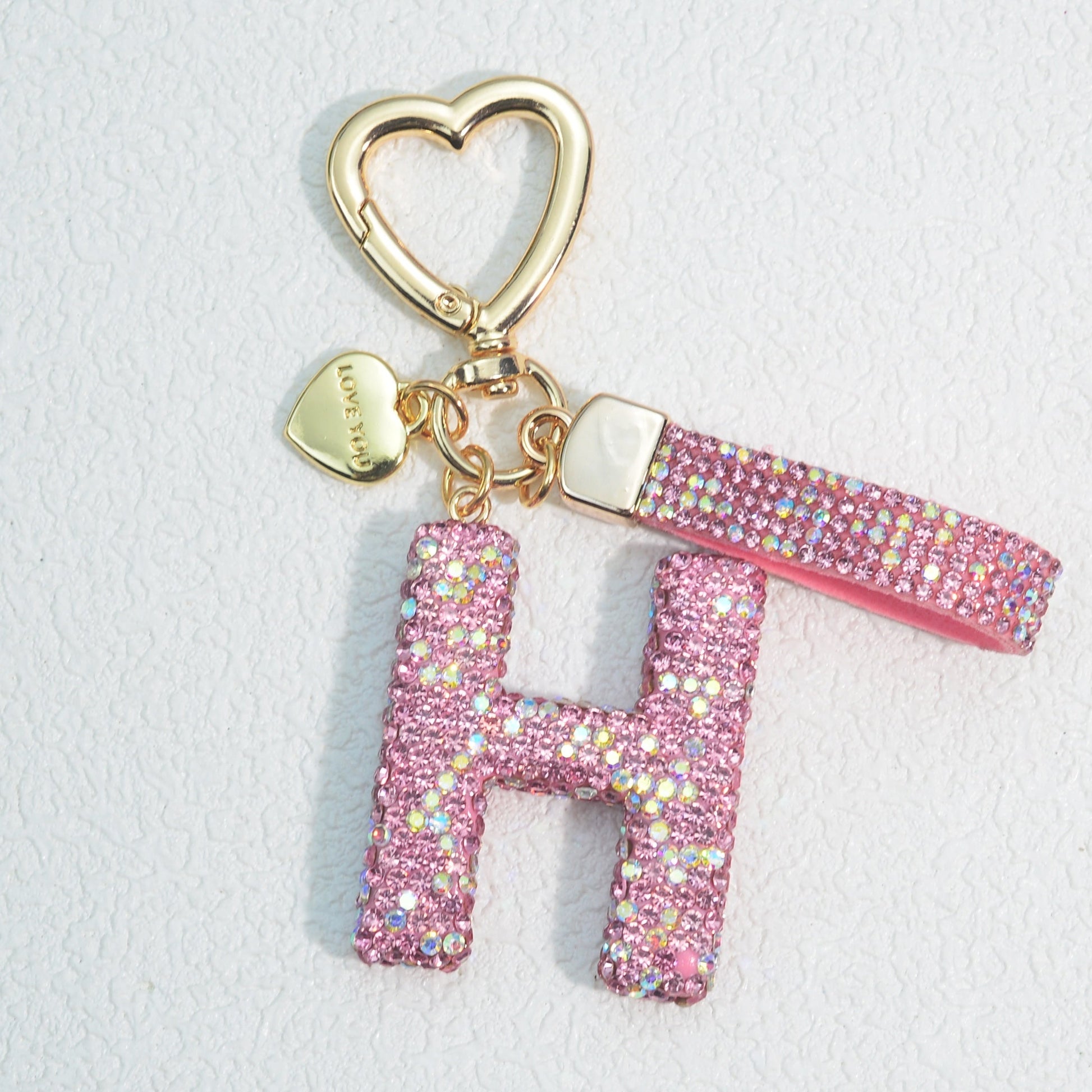 Llavero de PVC con iniciales de pedrería rosa y blanca con cierre de puño para mujeres
