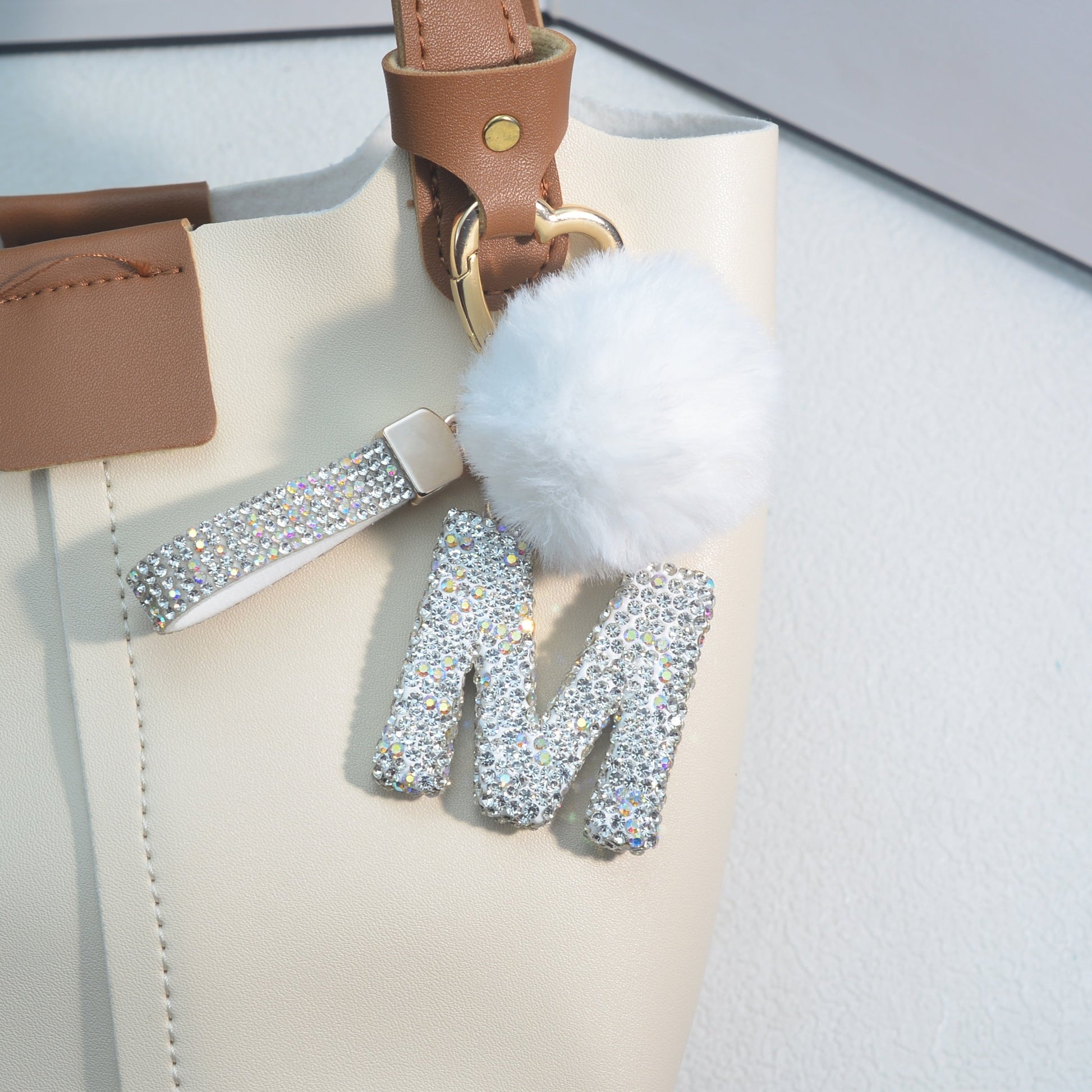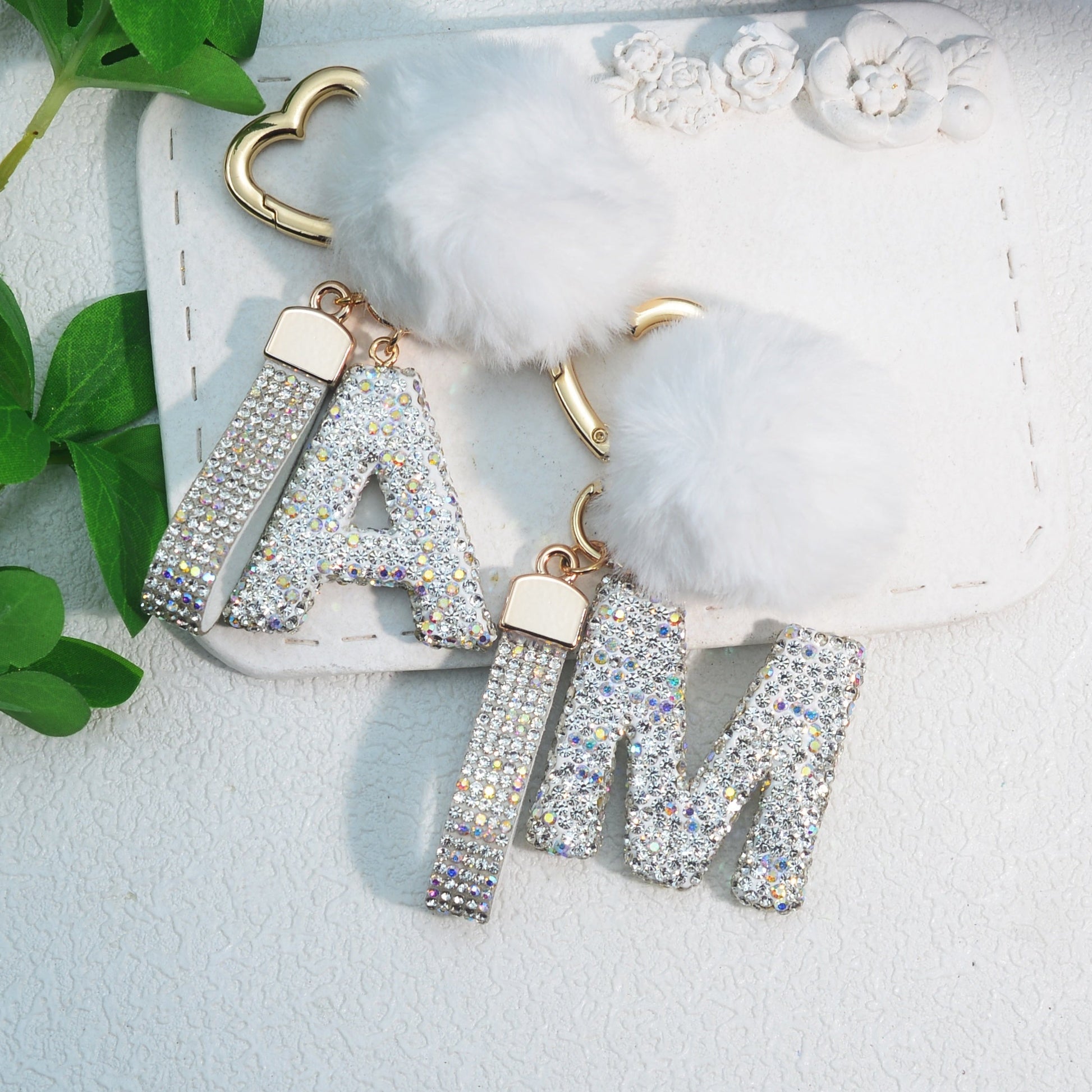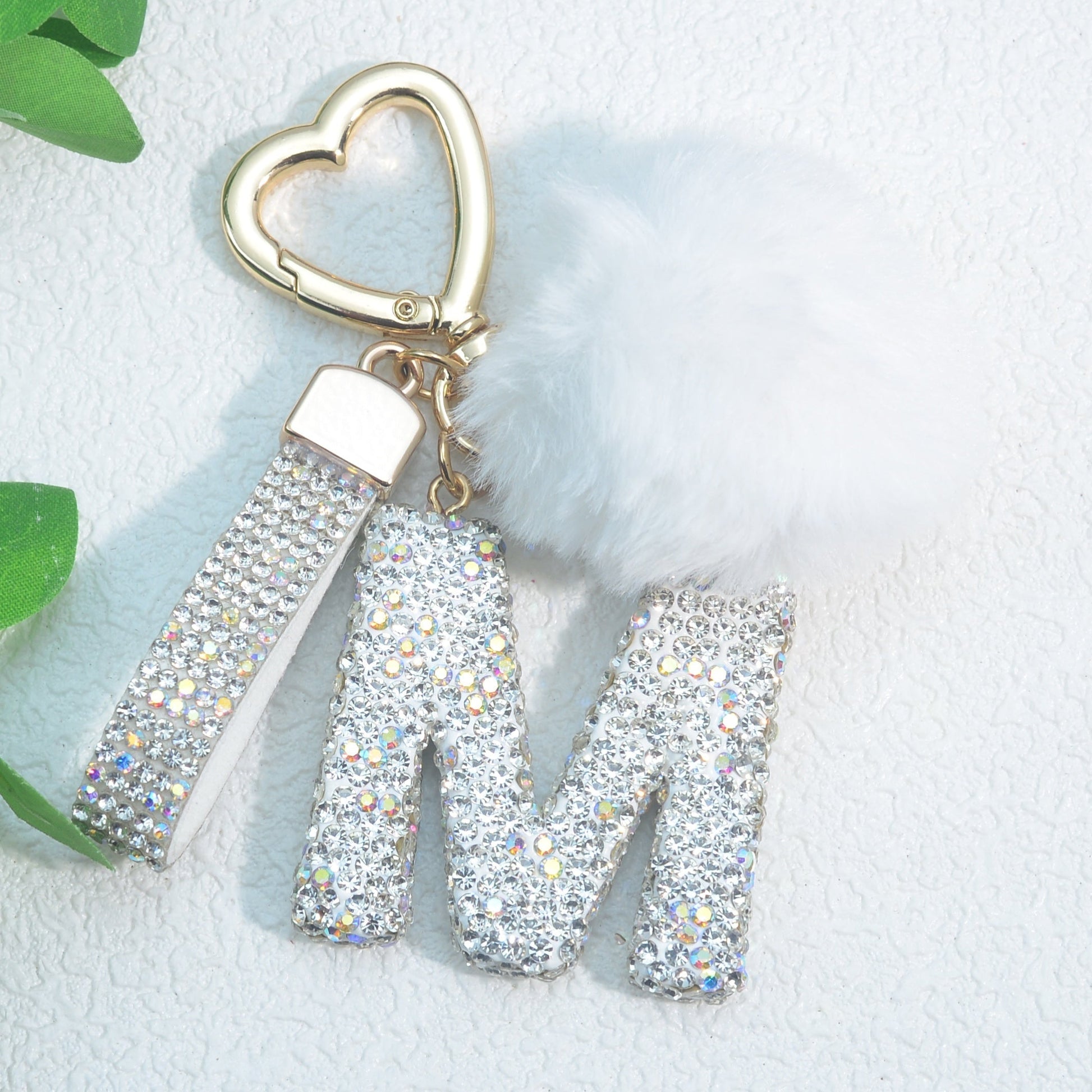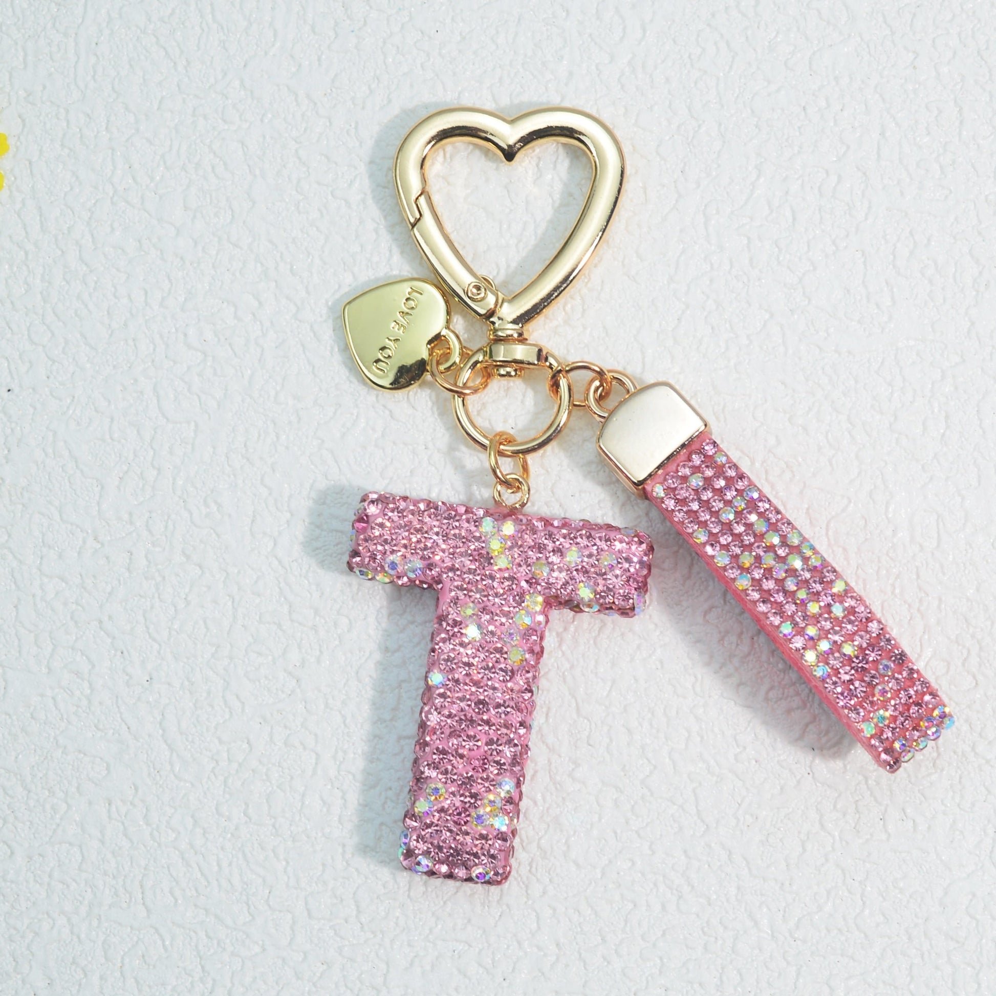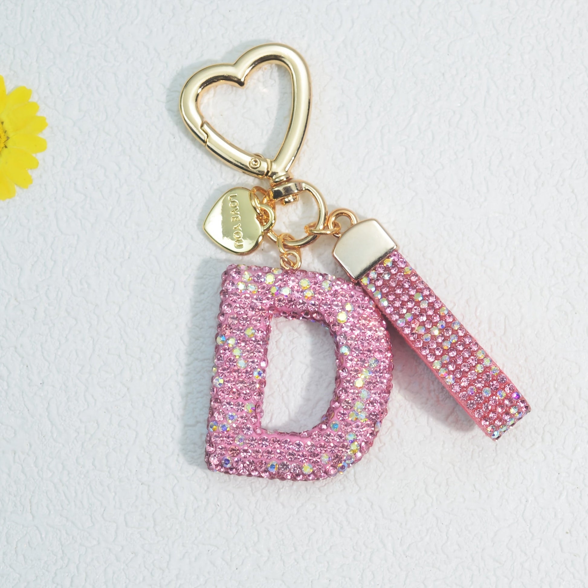 Llavero de PVC con iniciales de pedrería rosa y blanca con cierre de puño para mujeres