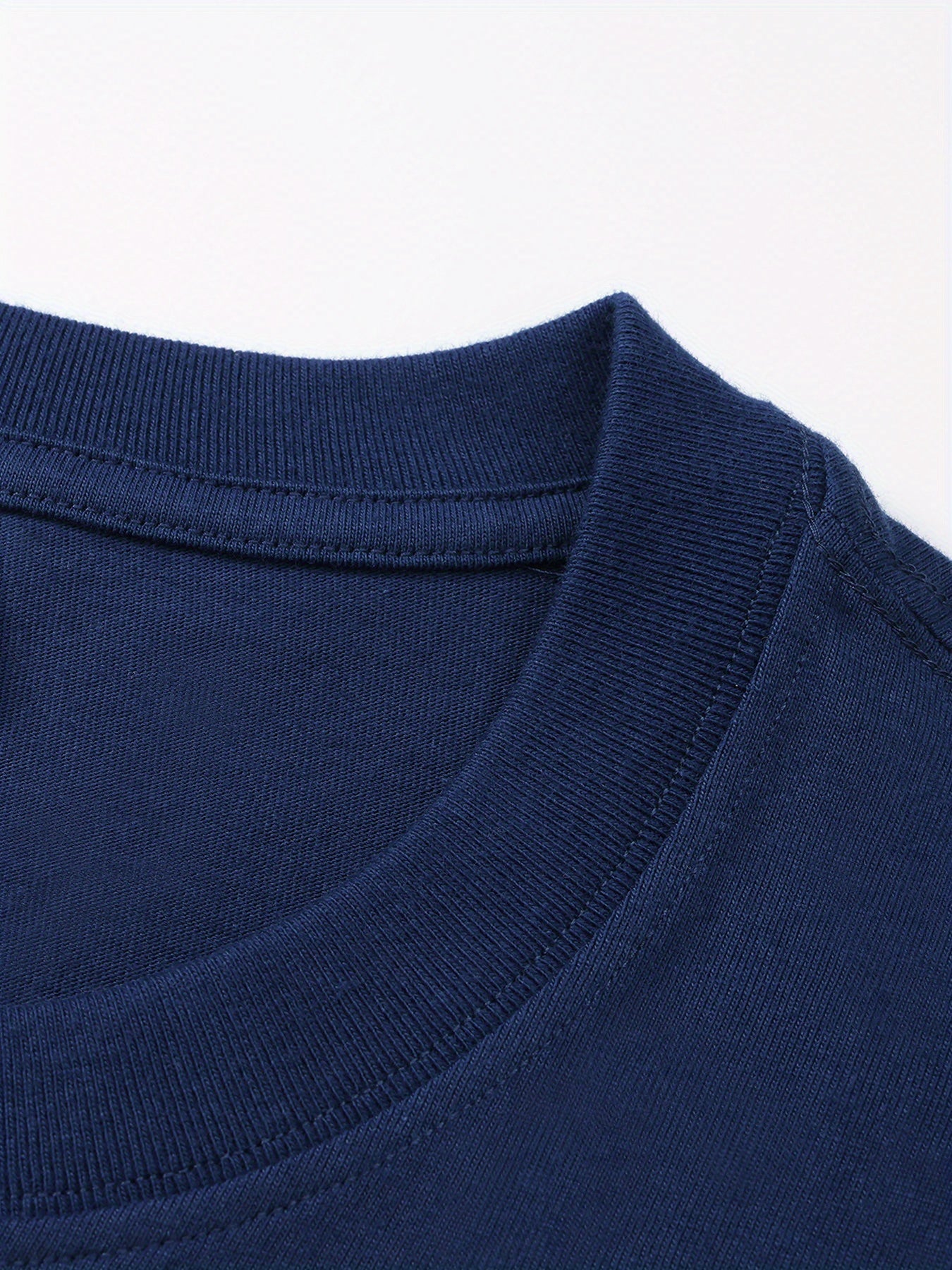 Camiseta de algodón sólida para hombre de manga corta con cuello redondo, ropa casual de verano