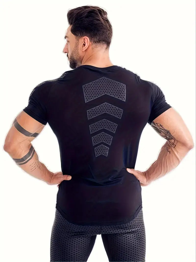 Camiseta de compresión atlética para hombre con estampado de flechas, transpirable, de poliéster, de manga corta para gimnasio y fitness