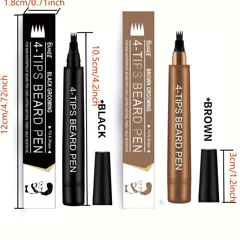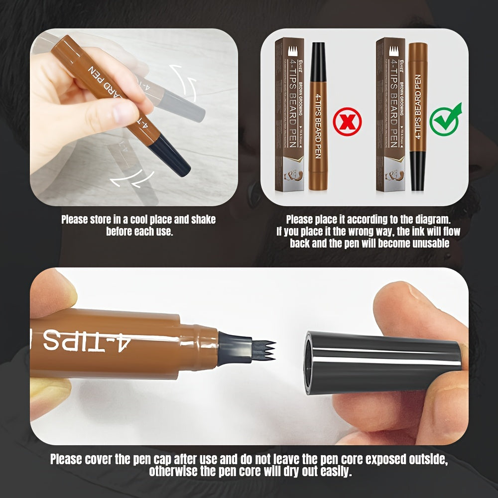 Bolígrafo para barba para hombres, con punta en forma de tenedor de 4 puntas, resistente al sudor, relleno de barba de larga duración