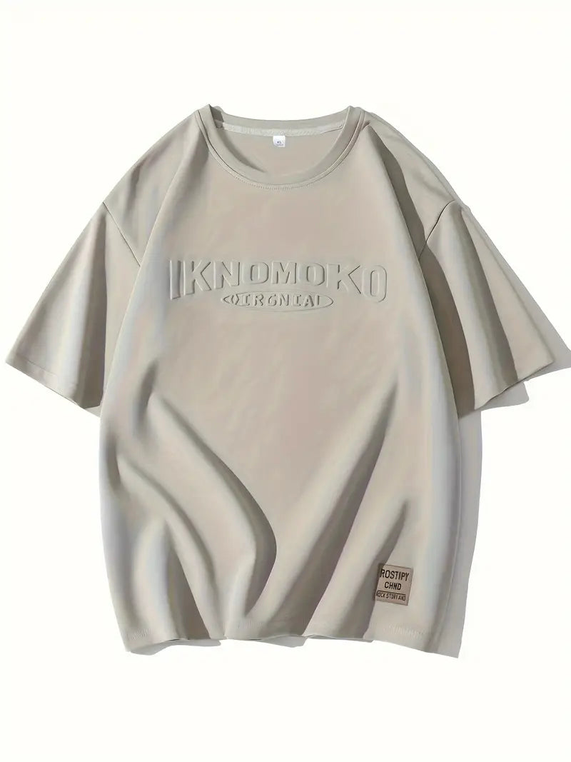 Camiseta de manga corta para hombre, transpirable, de poliéster, con patrón de letras, casual, para verano, ajuste cómodo