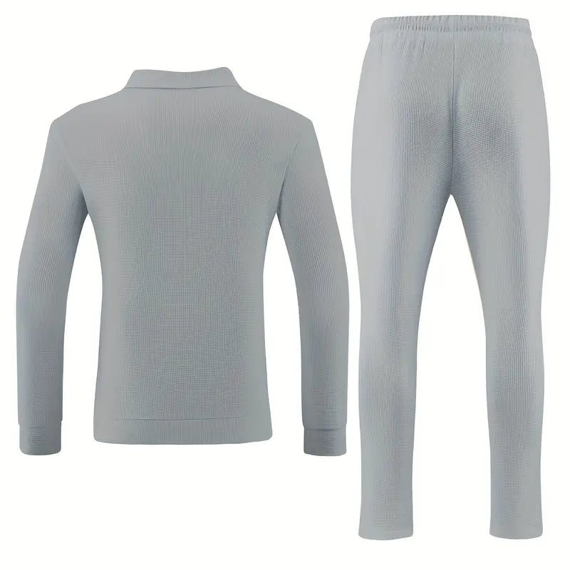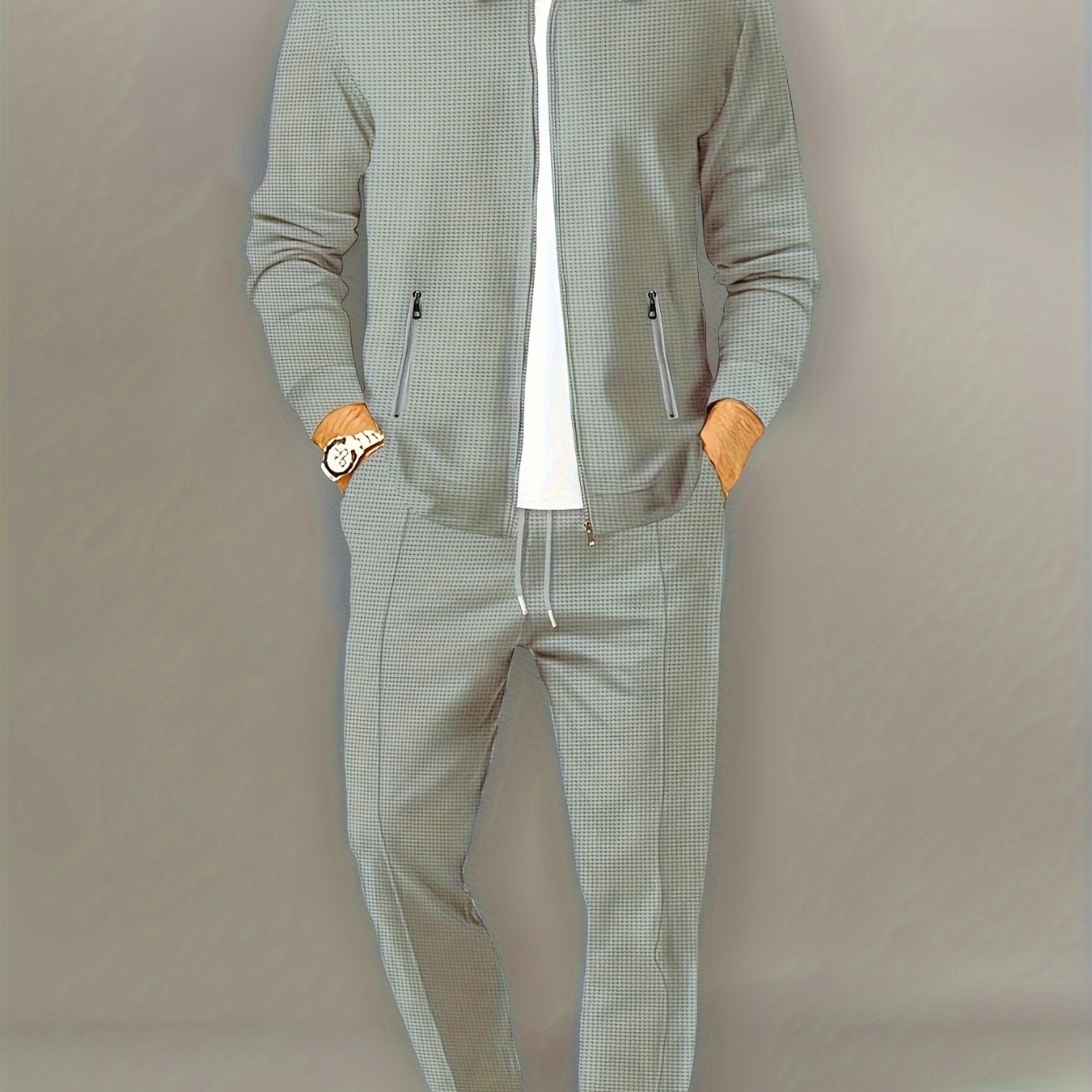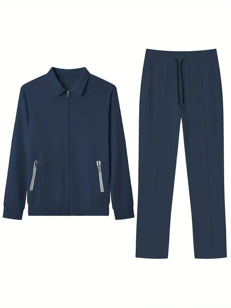 Conjunto casual de color sólido para hombre de 2 piezas con pantalones con cordón y chaqueta con cremallera