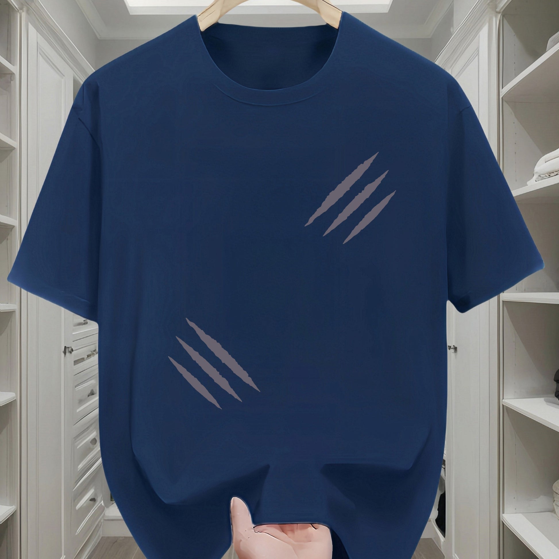 Camiseta de algodón para hombre de manga corta, cuello redondo, casual, para todas las estaciones, con patrón geométrico