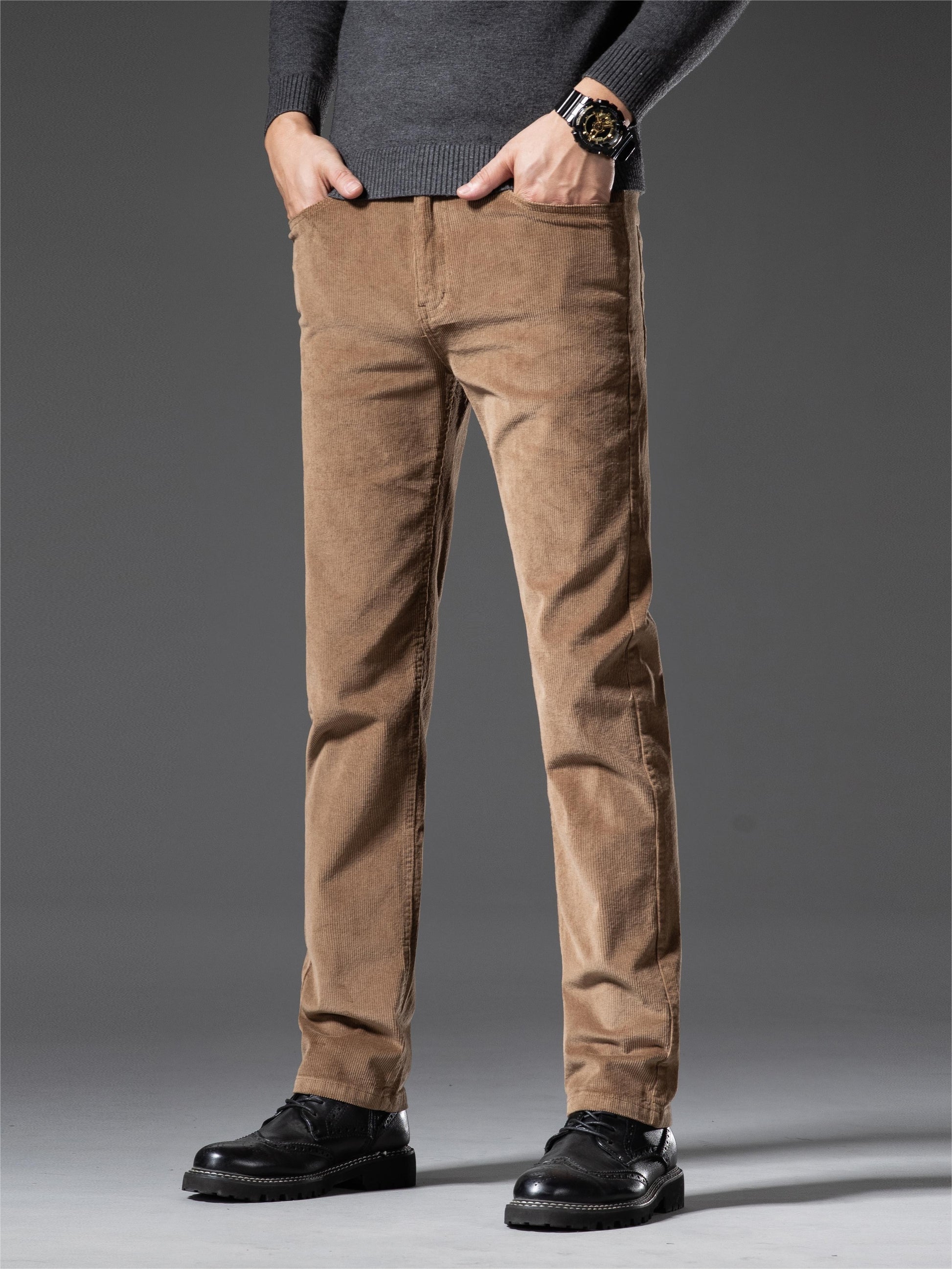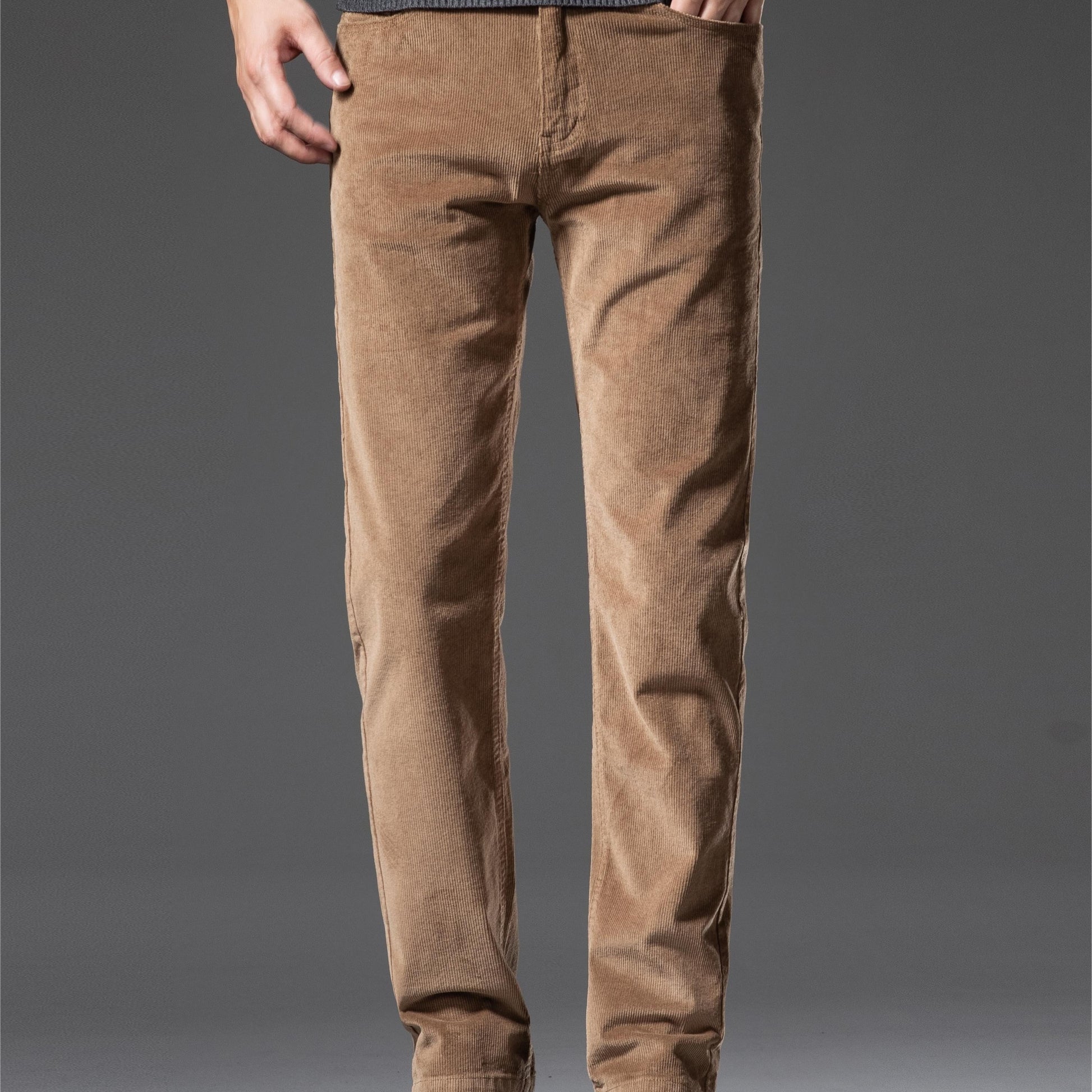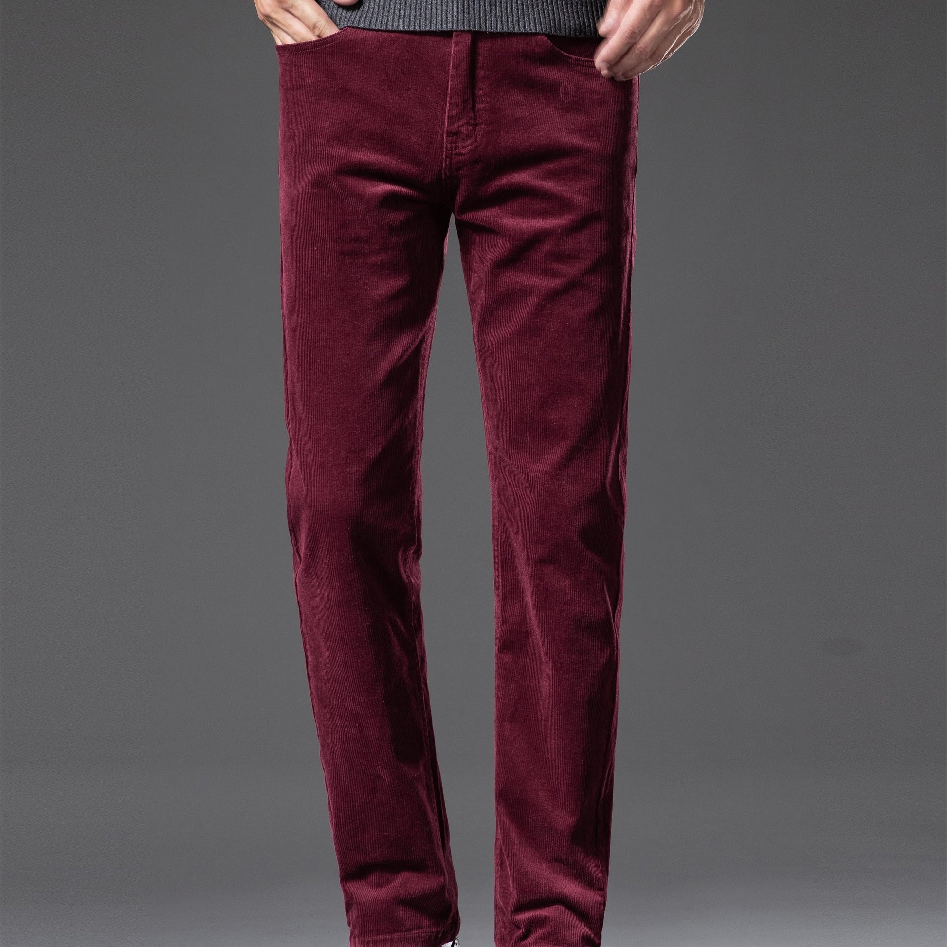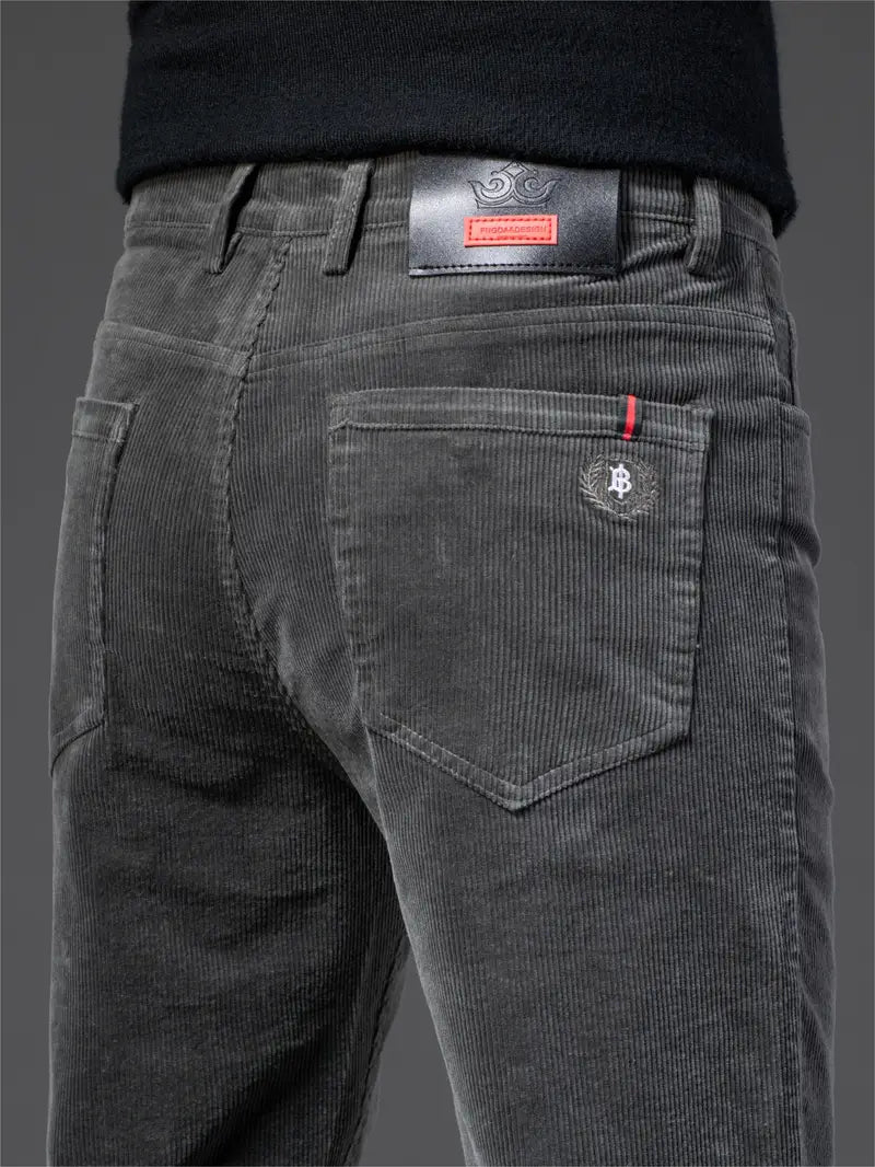Pantalones de pana de corte ajustado para hombre, otoño e invierno, color sólido, mezcla de algodón, bordado