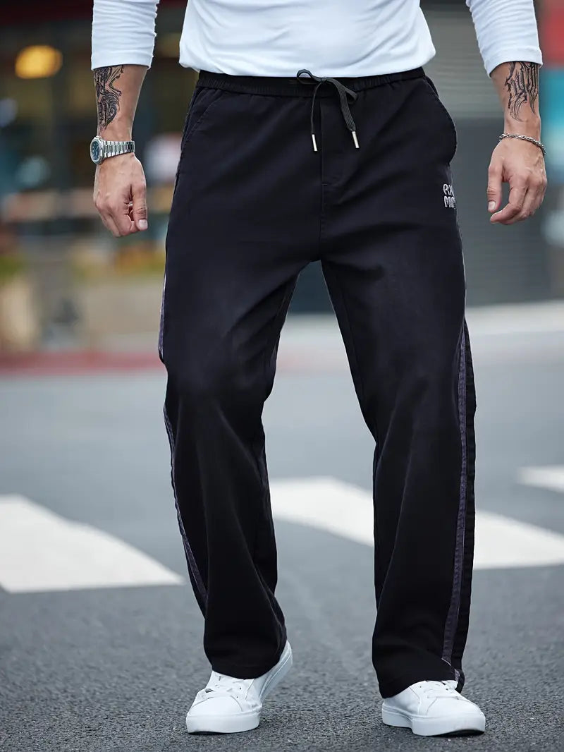Pantalones rectos de mezclilla de algodón para hombre con cordón, casuales, deportivos, primavera y otoño