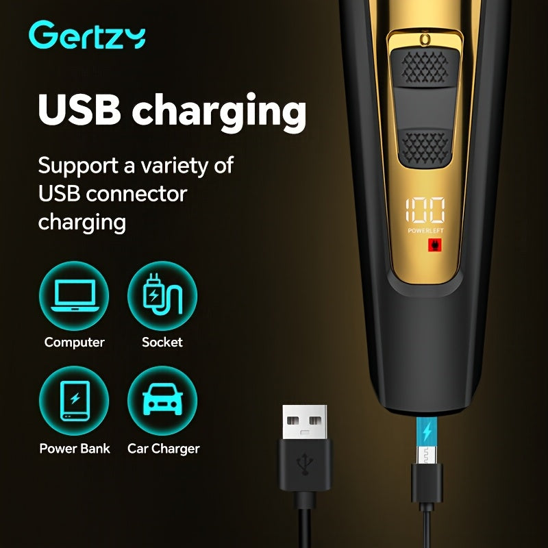 Afeitadora eléctrica para recorte de cabello y barba con peine limitador, pantalla digital de 10 velocidades, recargable por USB, regalo para el Día del Padre