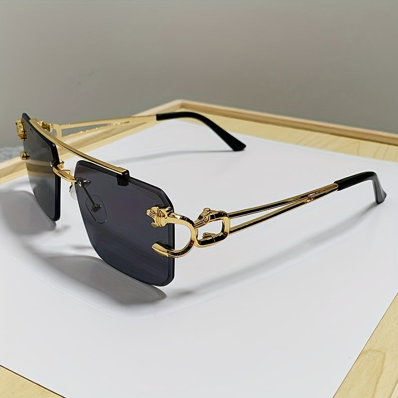 Gafas de sol cuadradas sin marco para hombre con decoración de cabeza de tigre dorada, antiparpadeo, para conducir