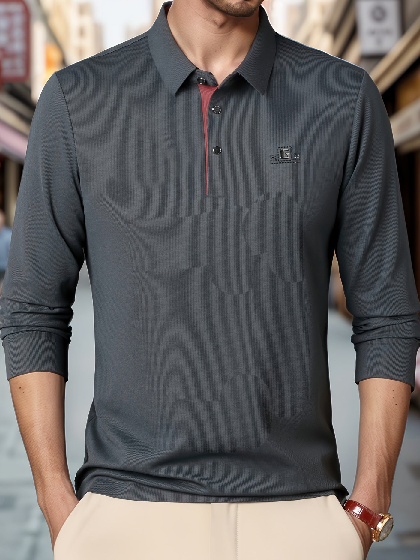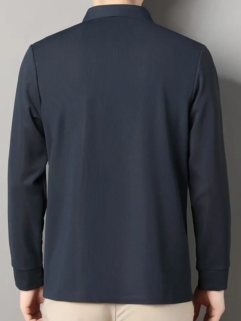 Camisa polo de golf para hombre con cuello de letras y poliéster spandex sólido