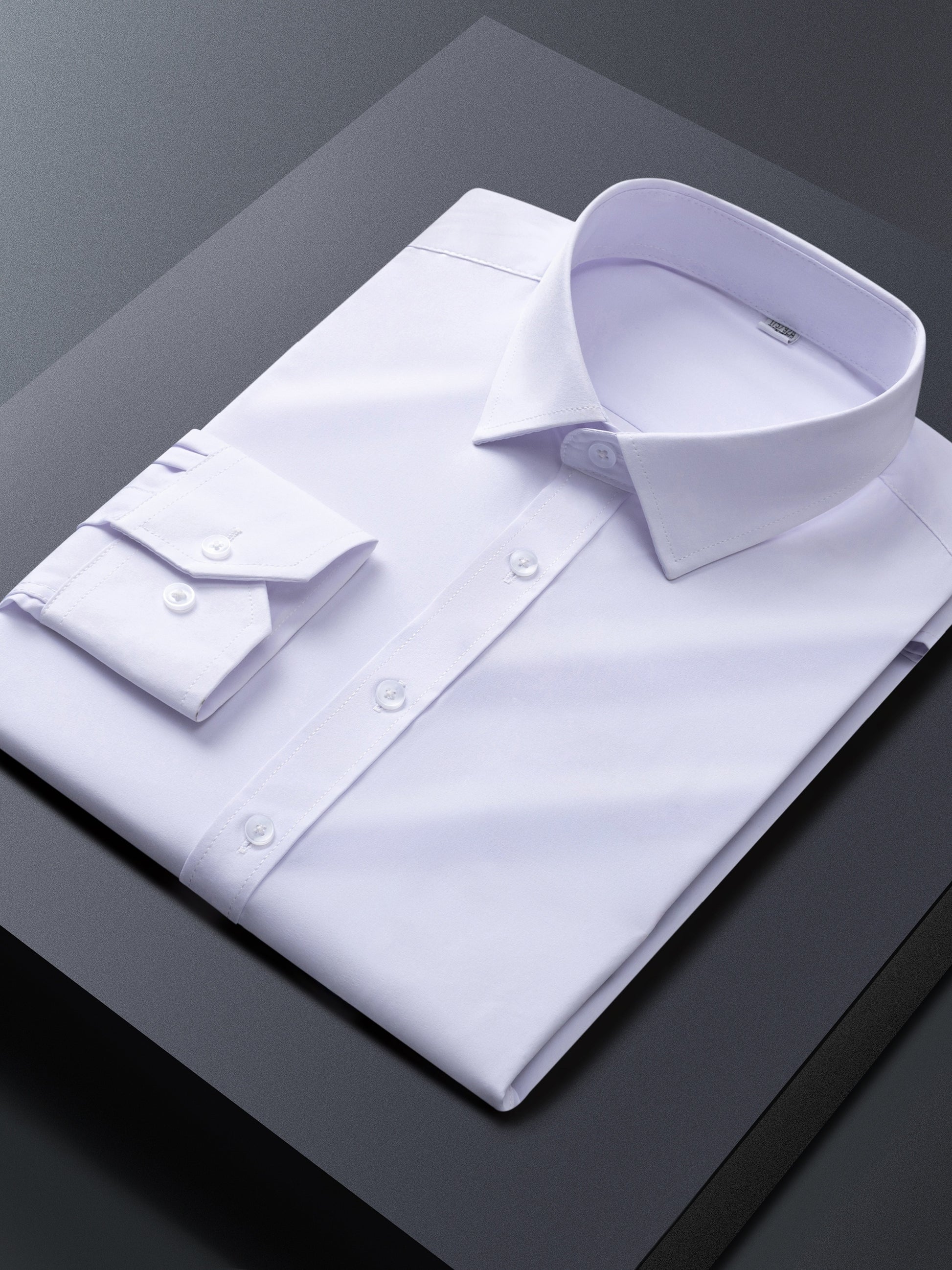 Camisa de vestir de estilo empresarial ligero para hombre, poliéster spandex de color sólido, con solapa y ajuste regular