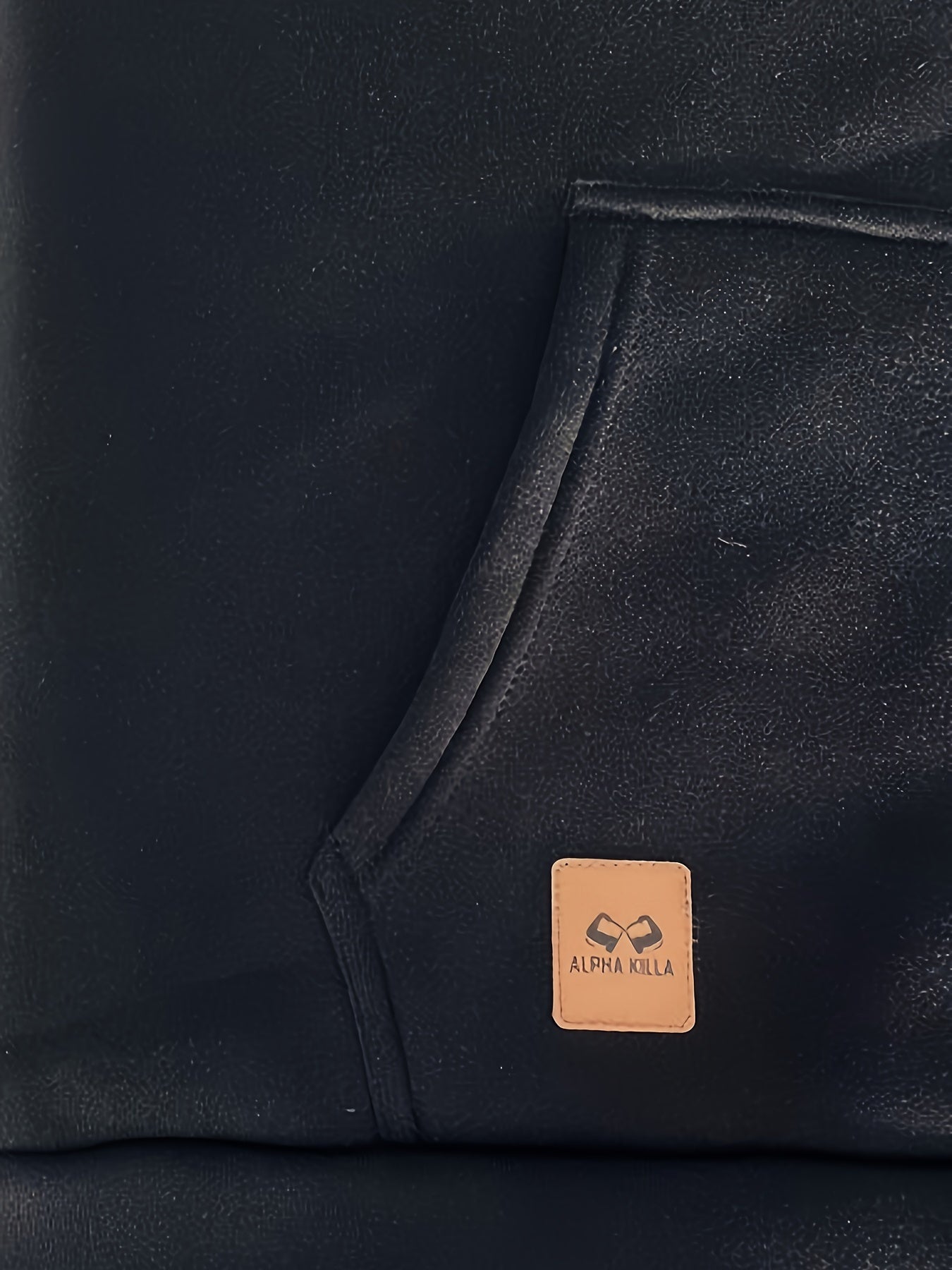 Sudadera con capucha azul marino para hombre con cuello henley con cremallera y bolsillo canguro