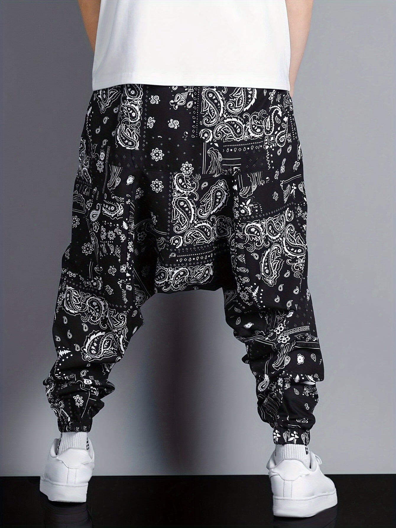Pantalones jogger oversize para hombre con estampado de patrón paisley en poliéster, ropa casual de calle