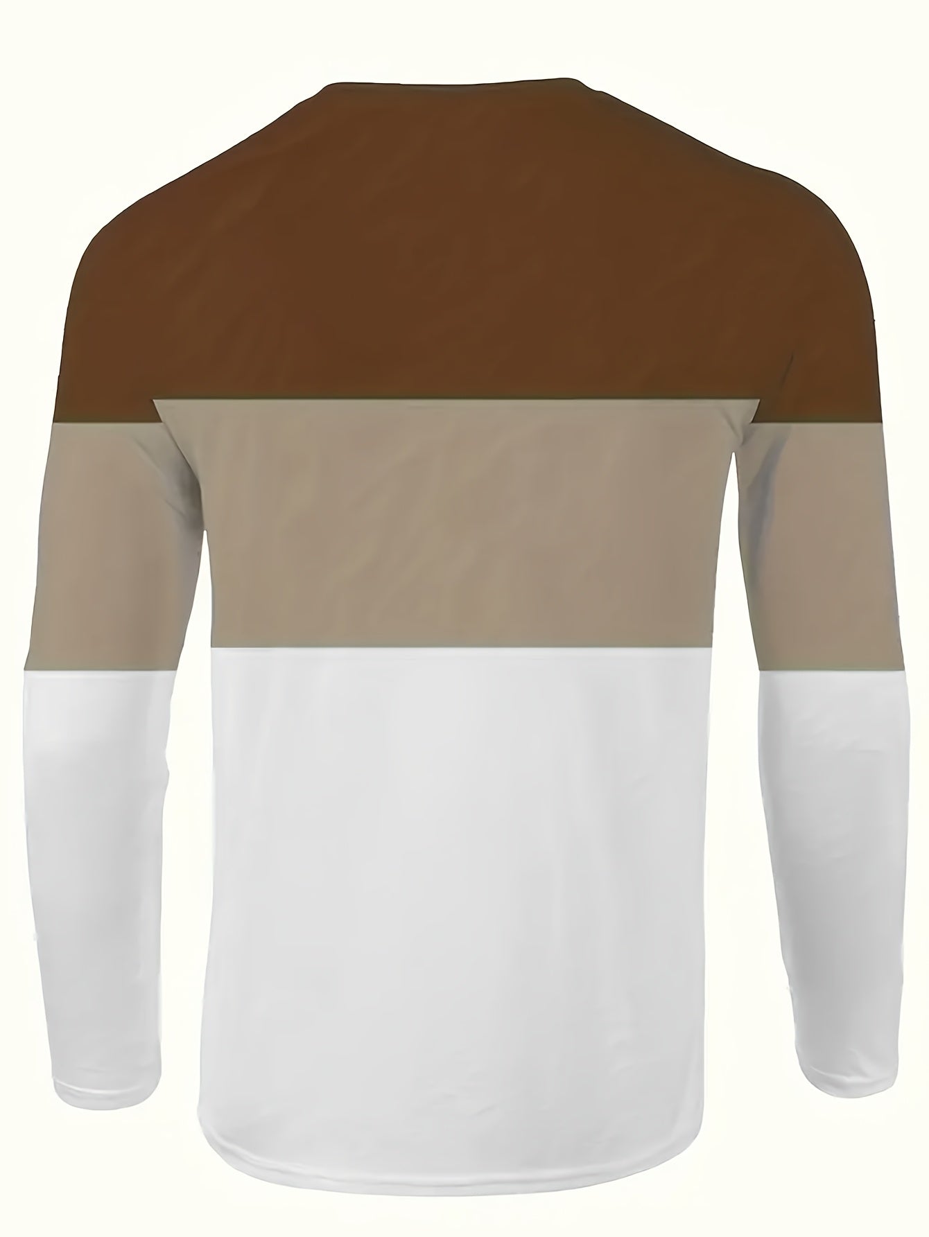 Sudadera de manga larga de poliéster para hombre talla grande con cuello redondo y bloque de colores, casual