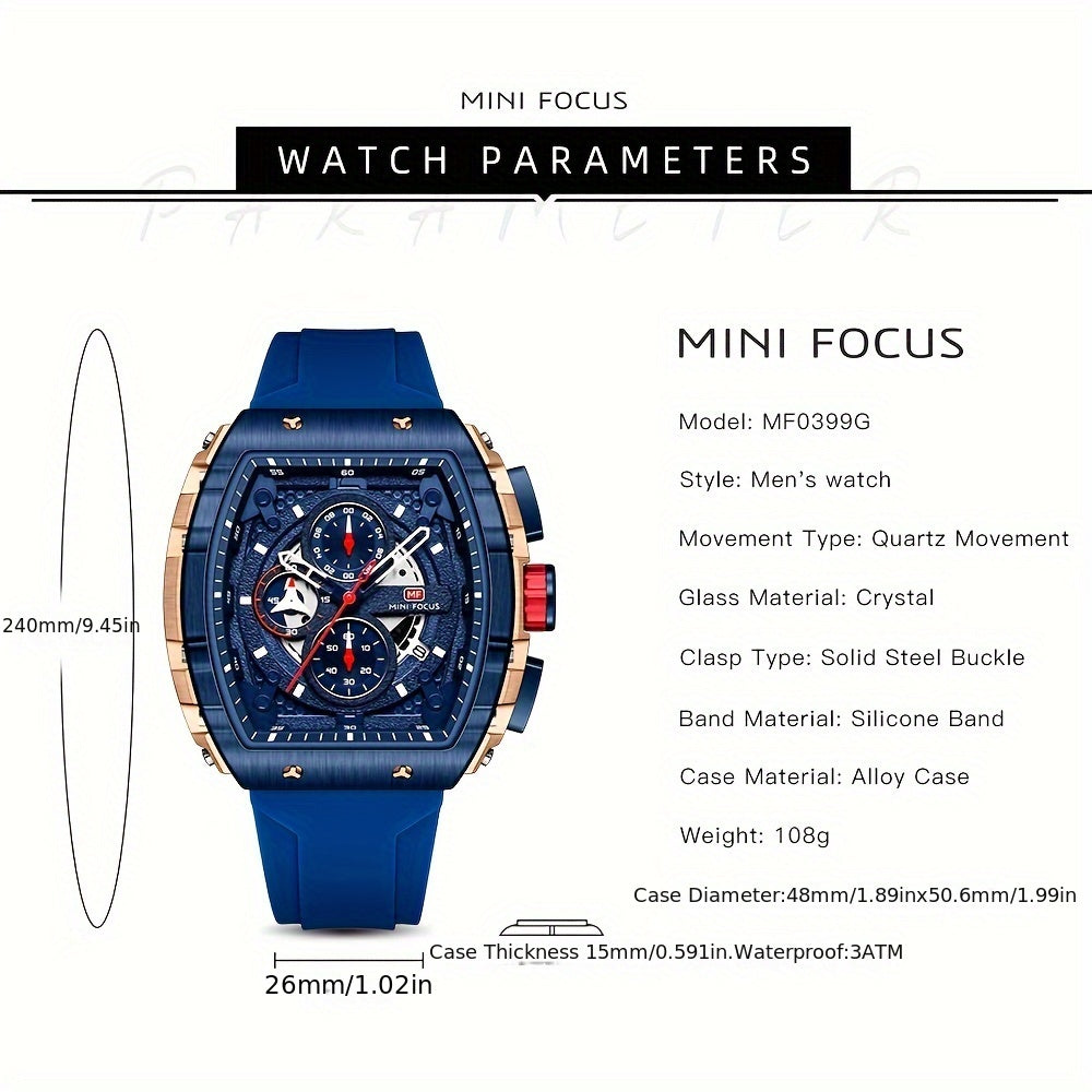 Reloj de cuarzo para hombre con correa de silicona, forma tonneau, puntero, deportivo, con pantalla luminosa