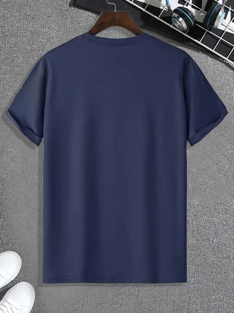 Camiseta de manga corta para hombre de poliéster con cuello redondo y patrón de alfabetos para verano casual