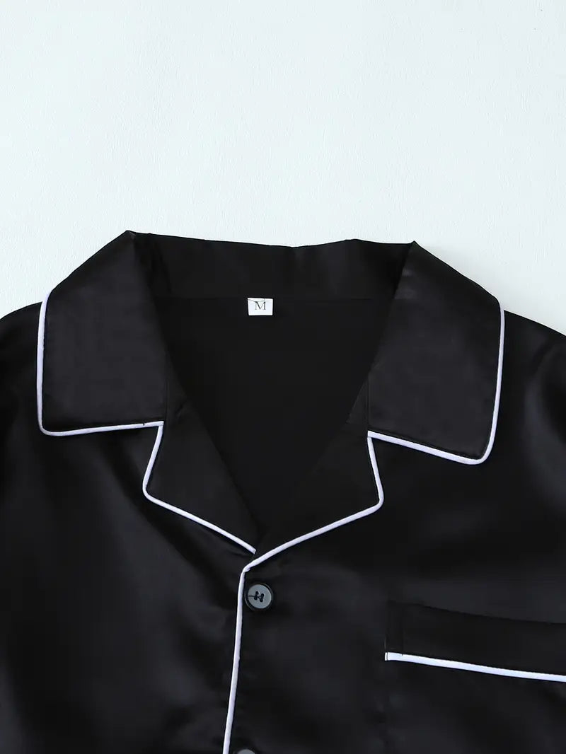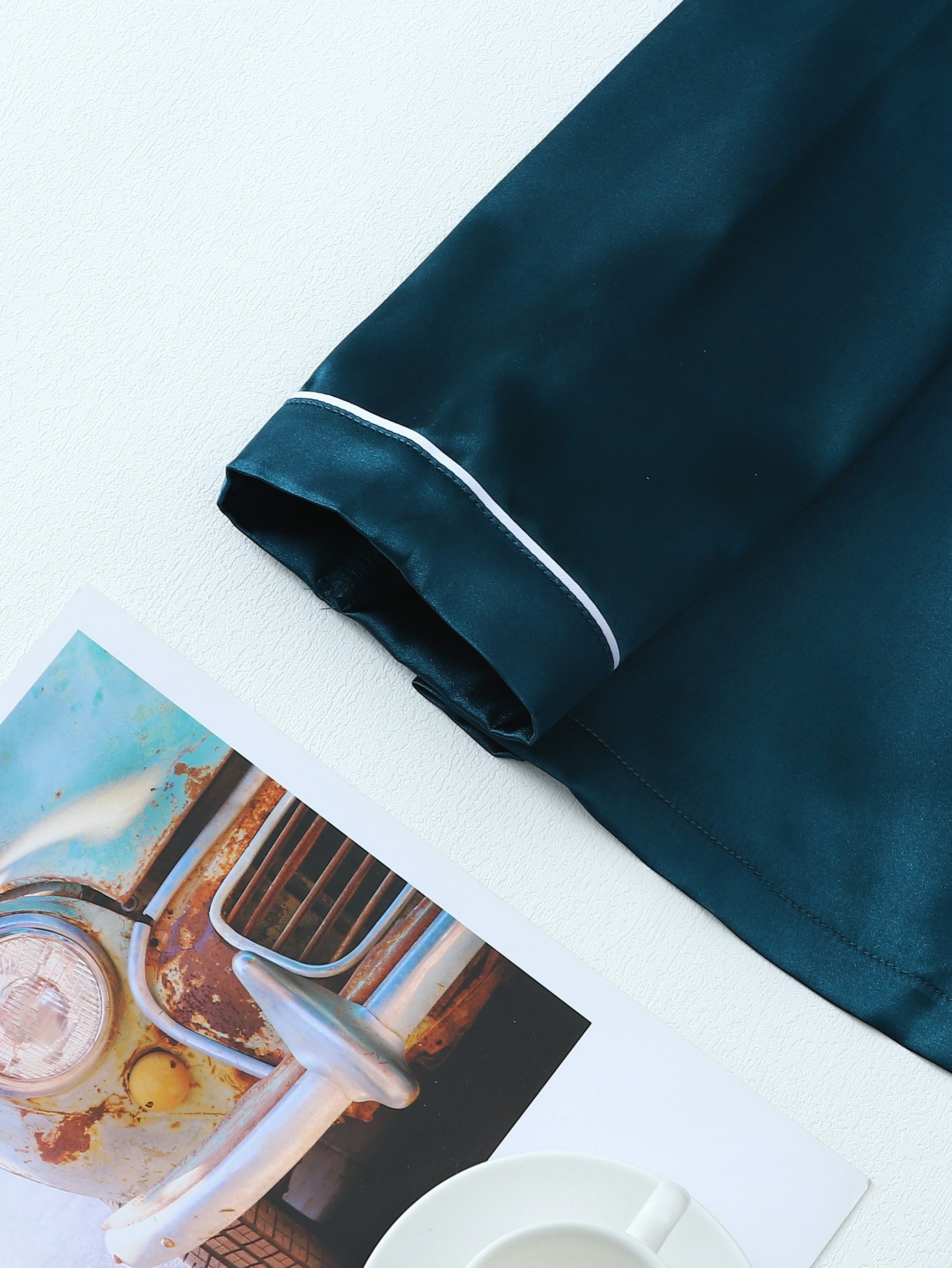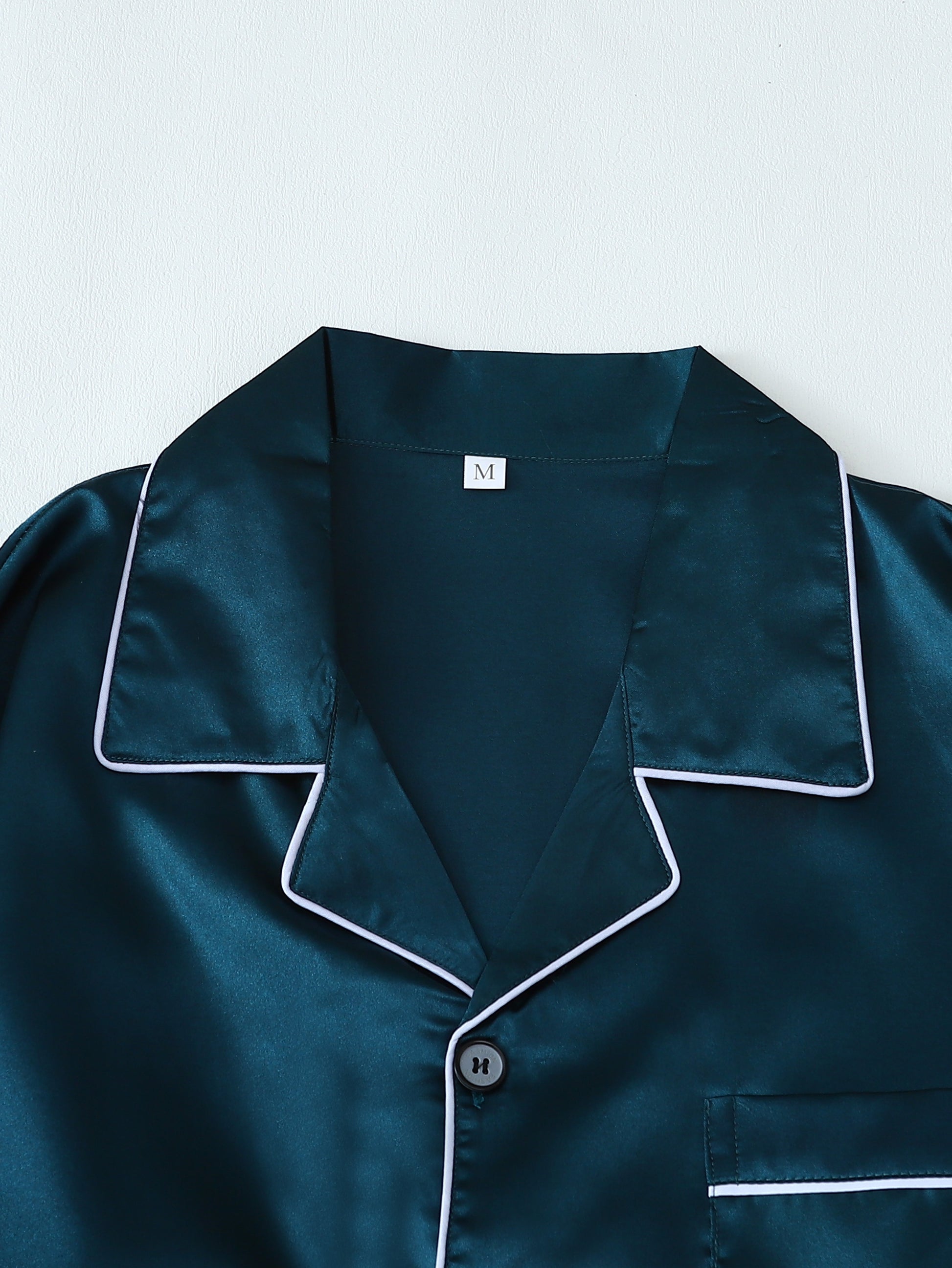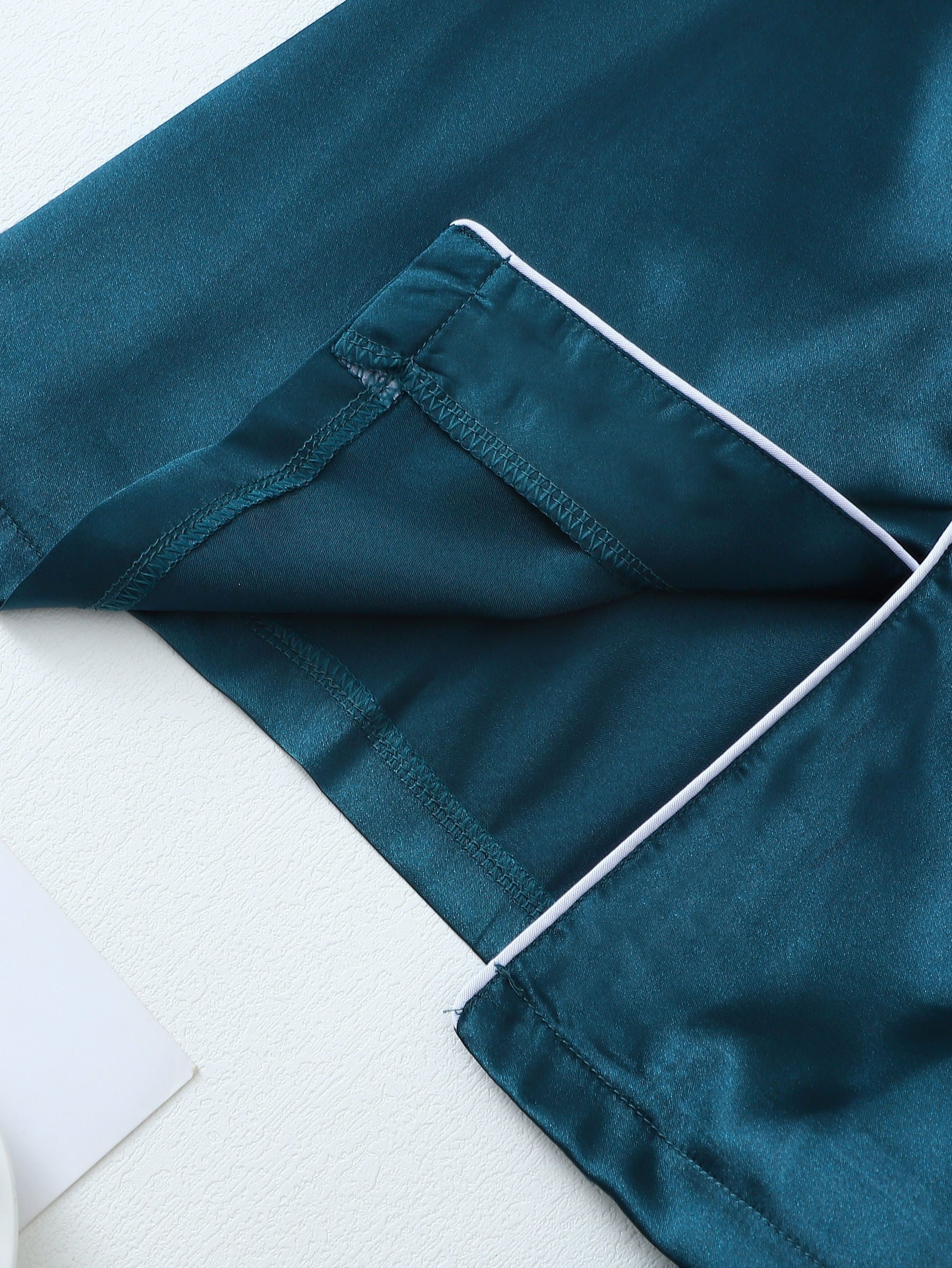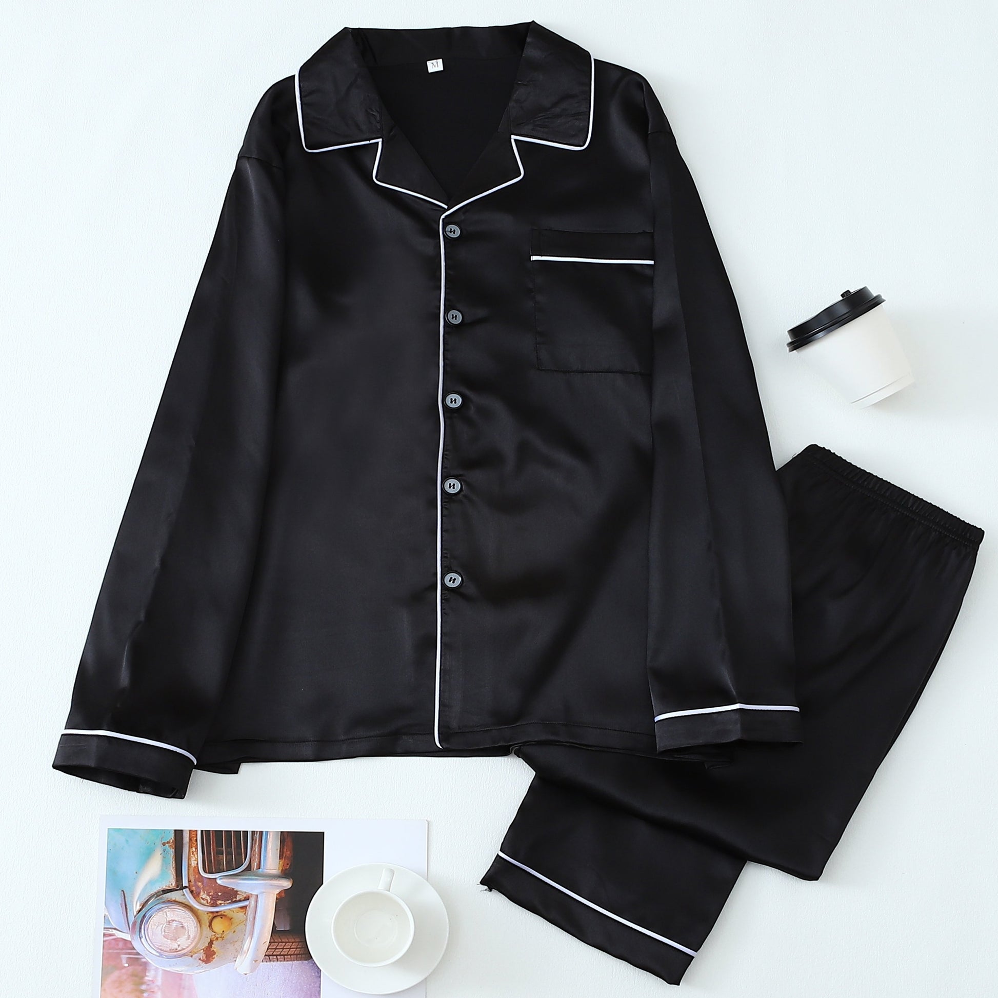 Conjunto de pijama de satén para hombre, manga larga, de color sólido, casual, con botones, para otoño e invierno