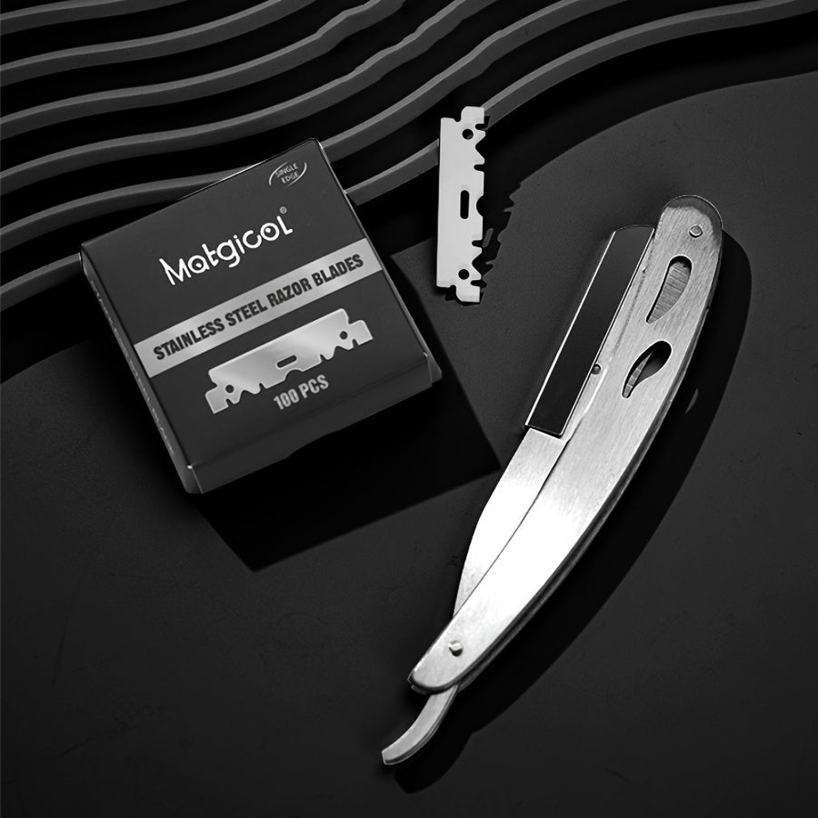 Cuchillas de afeitar de borde único para hombres, acero inoxidable, 100 unidades, afilado de precisión