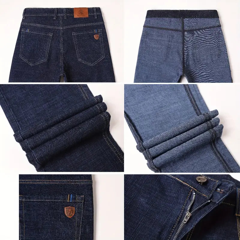 Jeans de corte ajustado para hombre, mezclilla elástica para todas las estaciones, color sólido, lavado crudo, casual, ajuste regular
