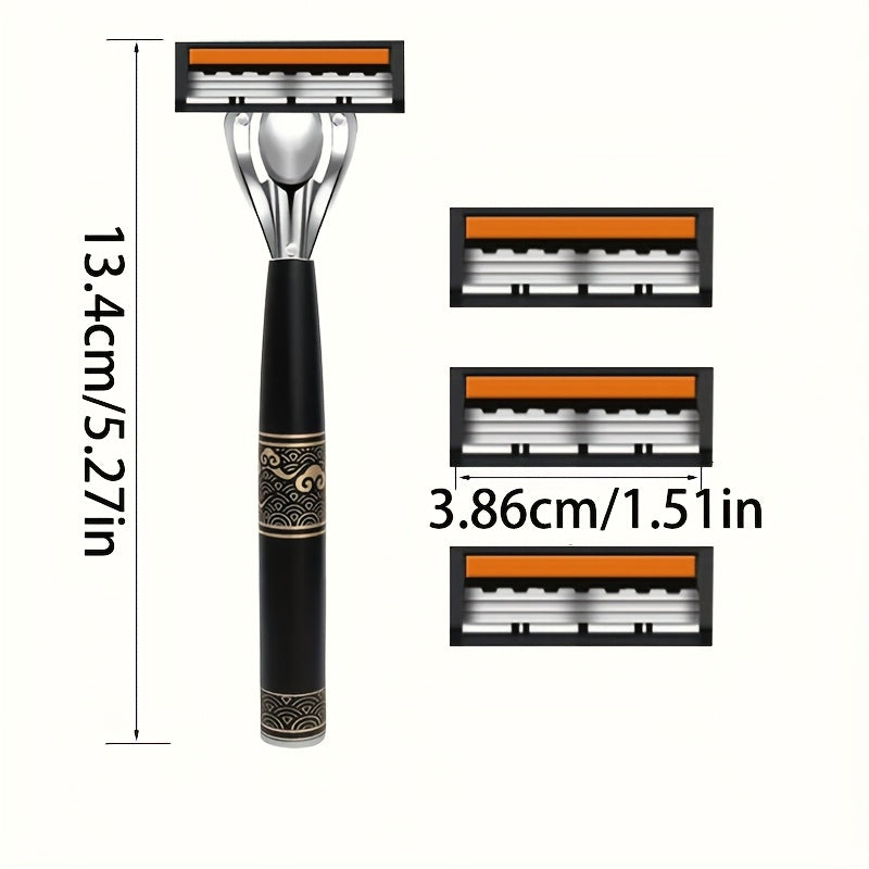 Juego de maquinillas de afeitar manual de acero inoxidable de 3 capas para hombres con hojas de repuesto
