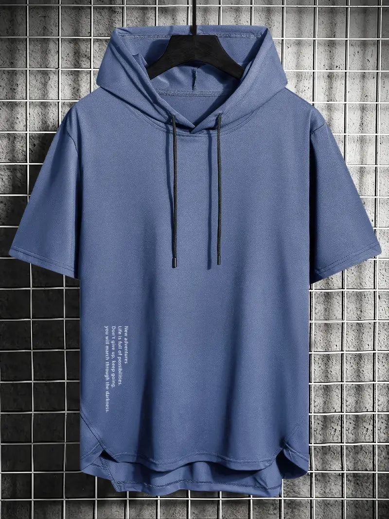 Camiseta con capucha de verano para hombre, transpirable, de punto de poliéster, patrón de letras, corte regular