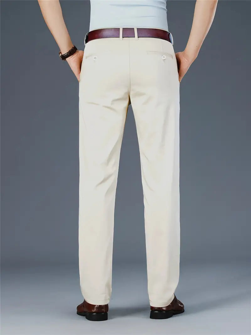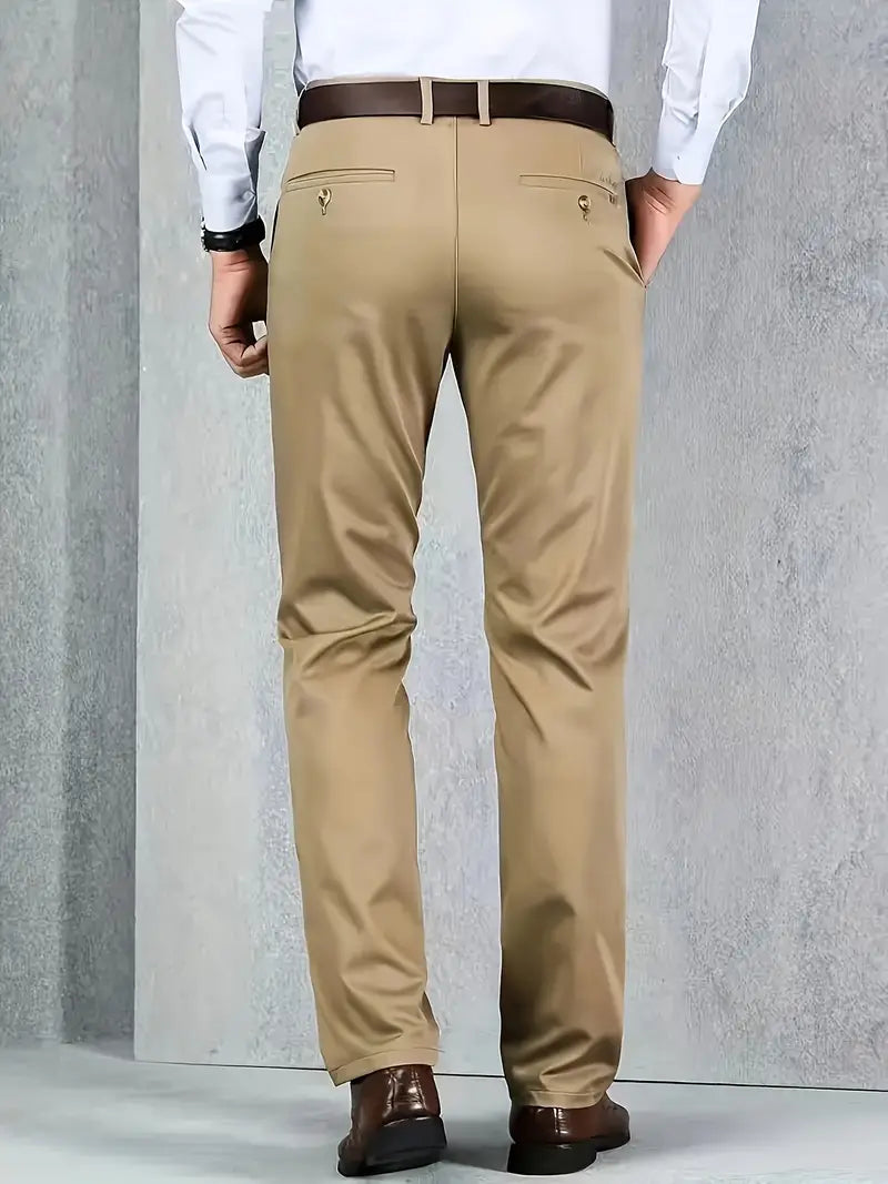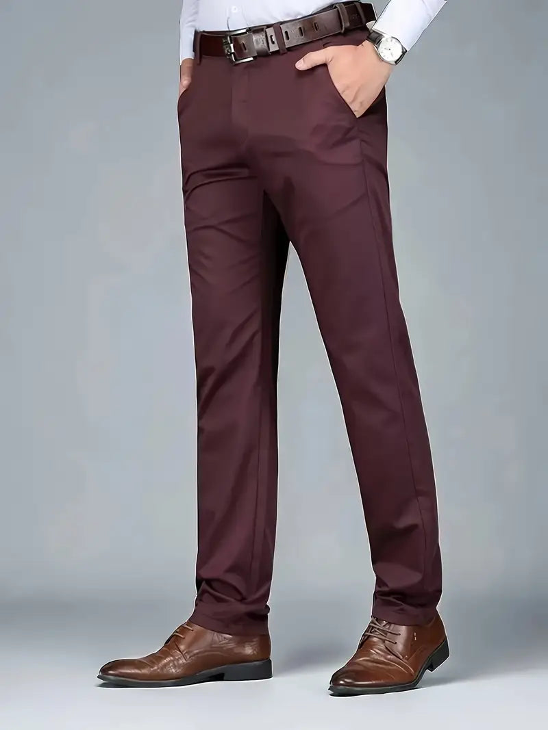 Pantalones de vestir de poliéster para hombre de color sólido, ajuste regular, para todas las estaciones, pantalones formales y casuales