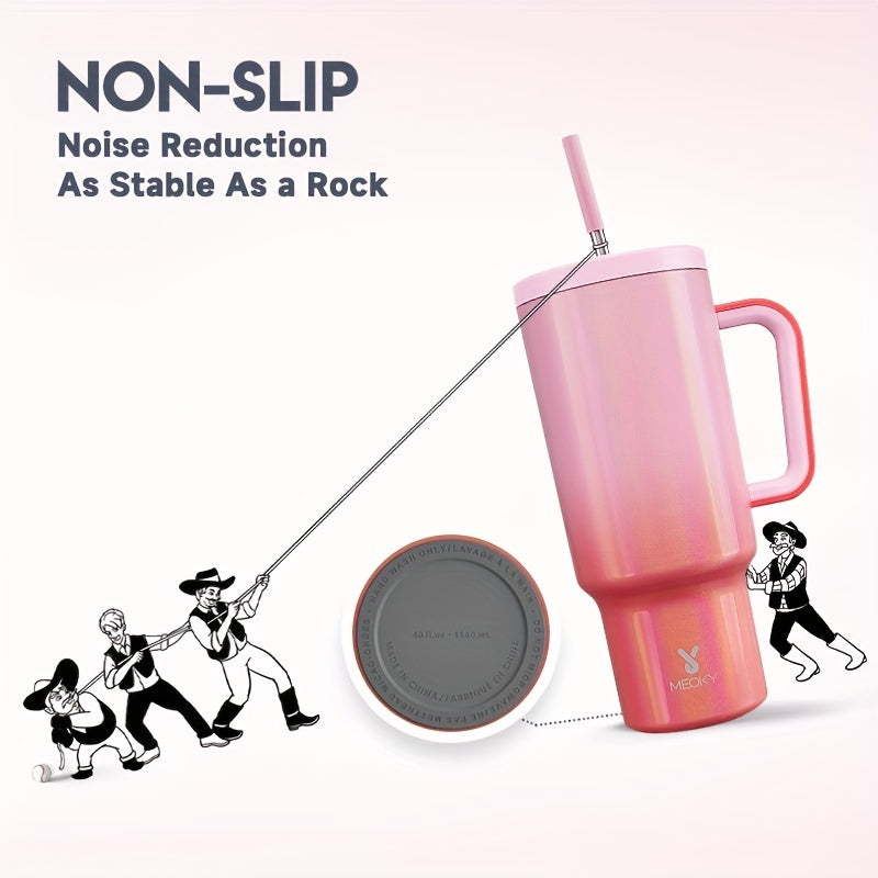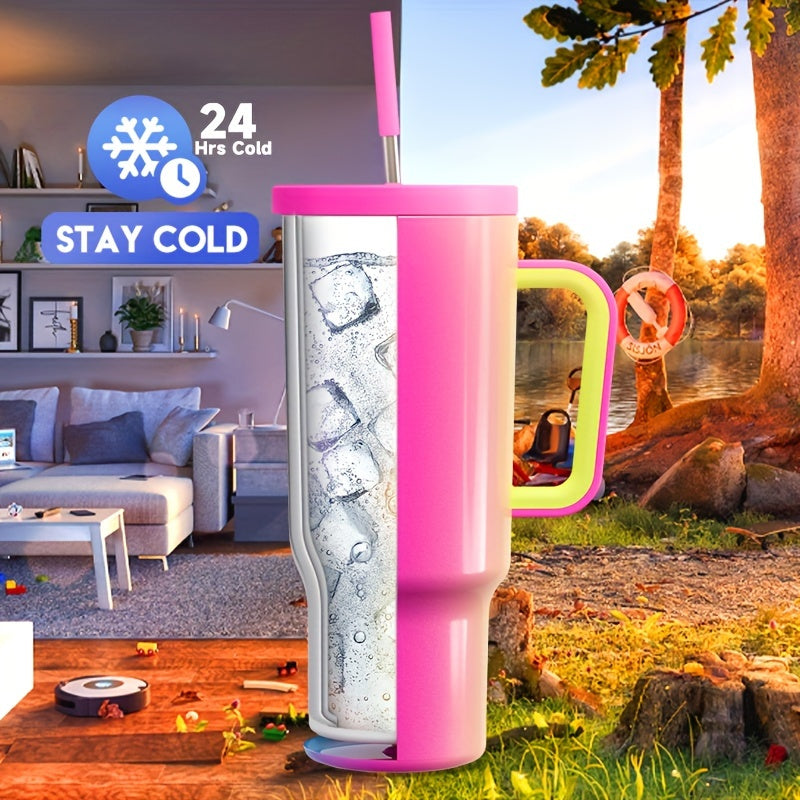 Vaso aislado de acero inoxidable de 40 oz con tapa, pajilla, asa y a prueba de fugas