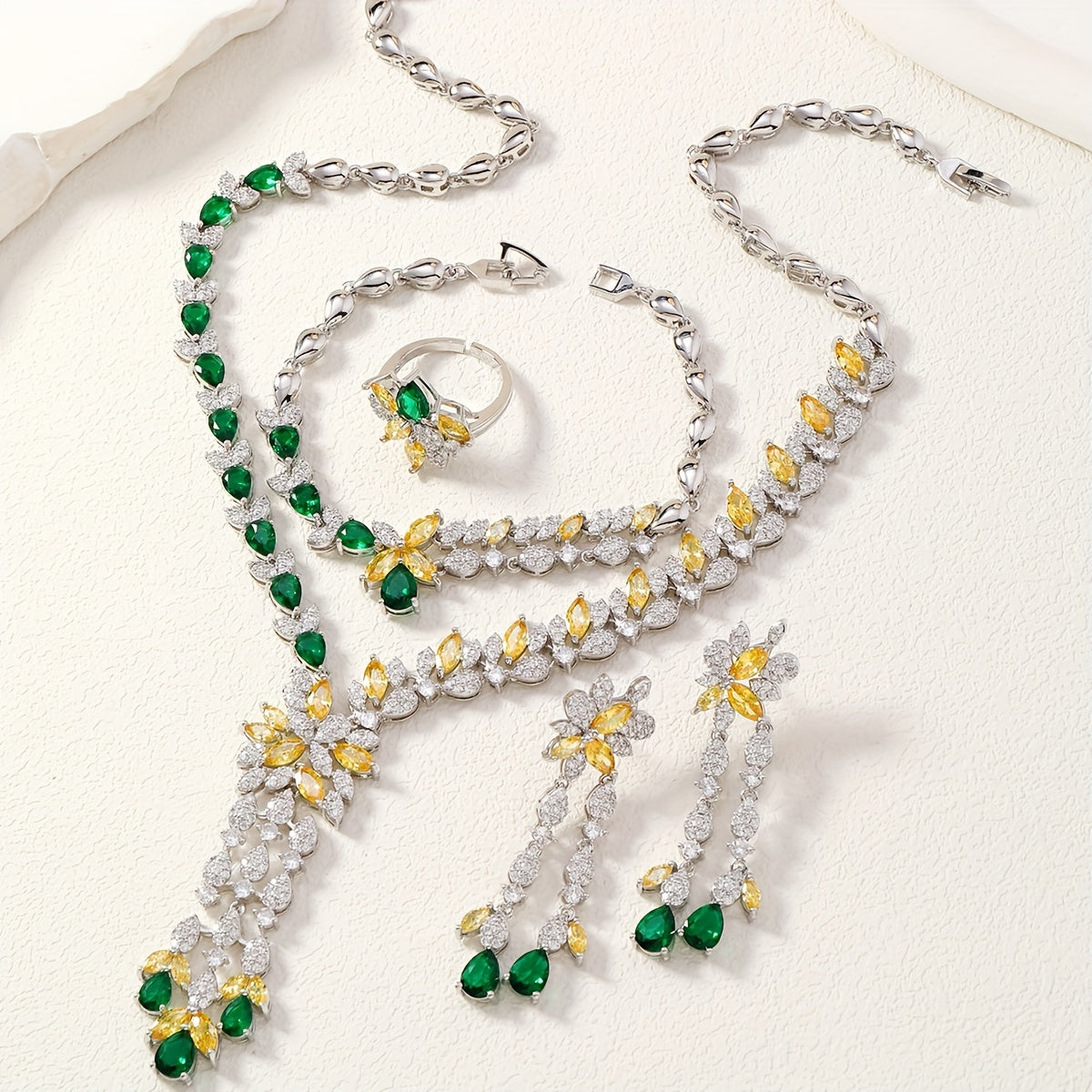 Conjunto de joyería de Oriente Medio para mujer con espigas de trigo y flores de zirconia cúbica de cobre para boda