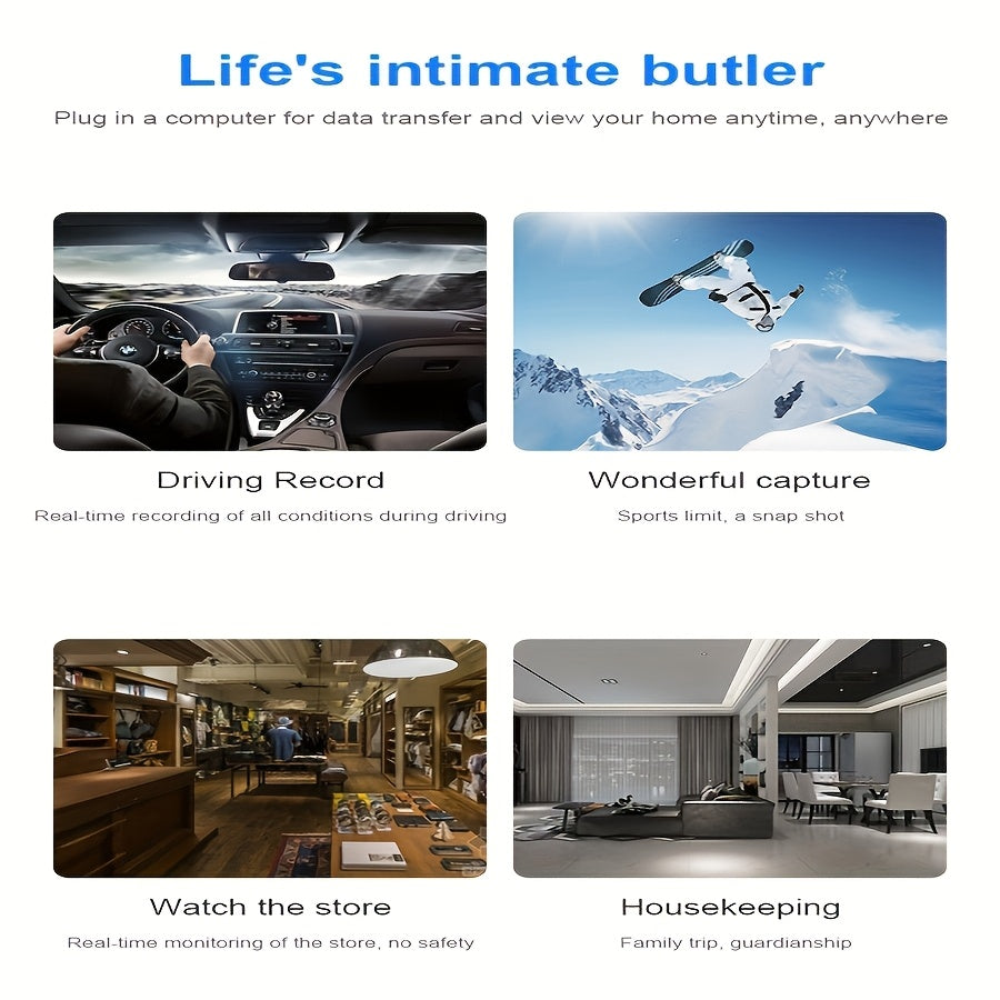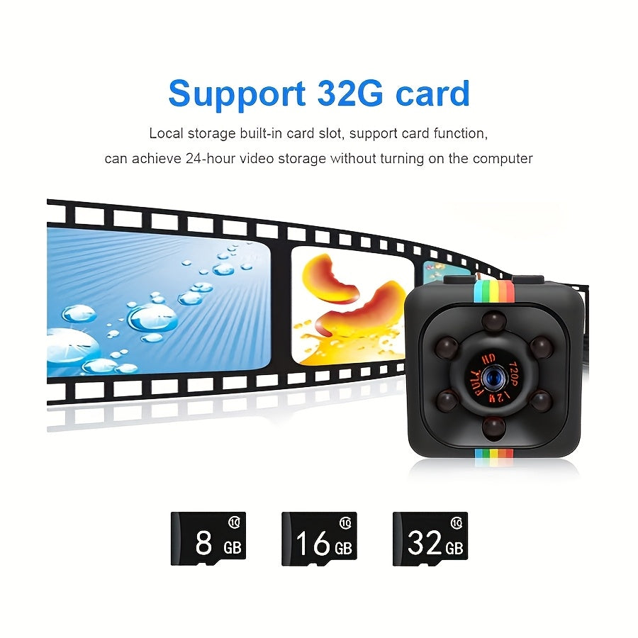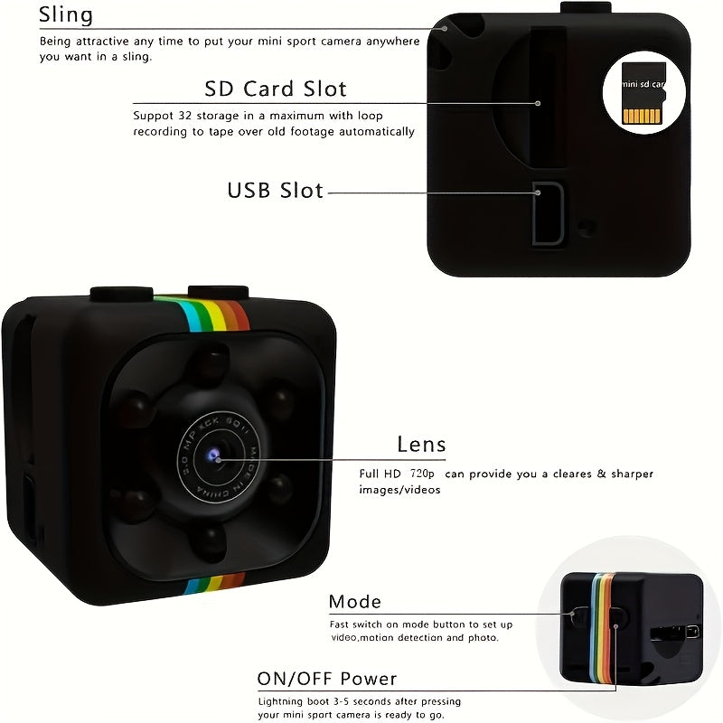 Cámara de seguridad HD 720P con detección de movimiento y audio, recargable por USB para vigilancia en el hogar, oficina y monitoreo de mascotas