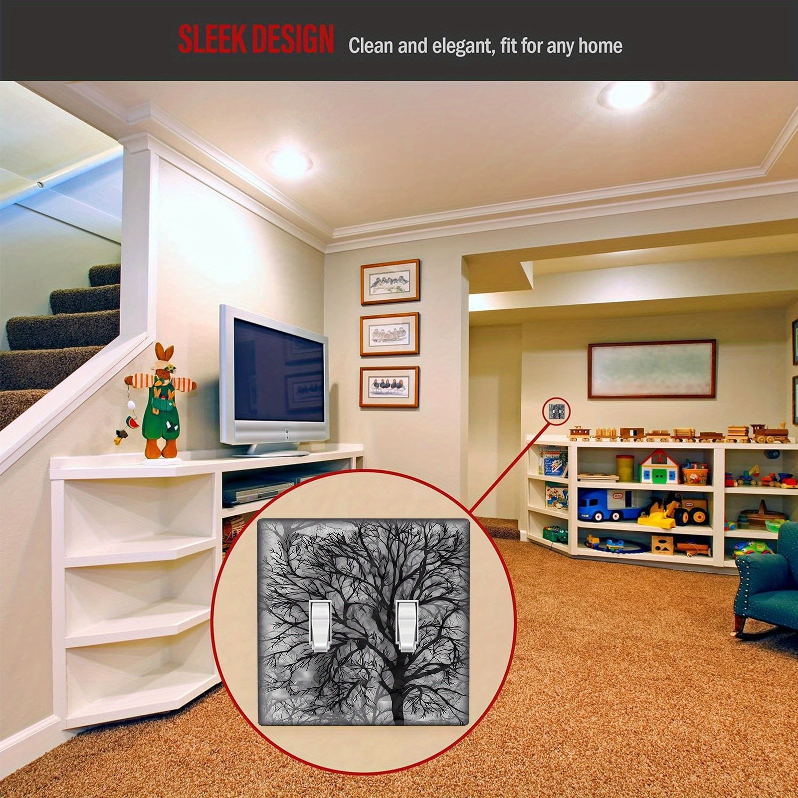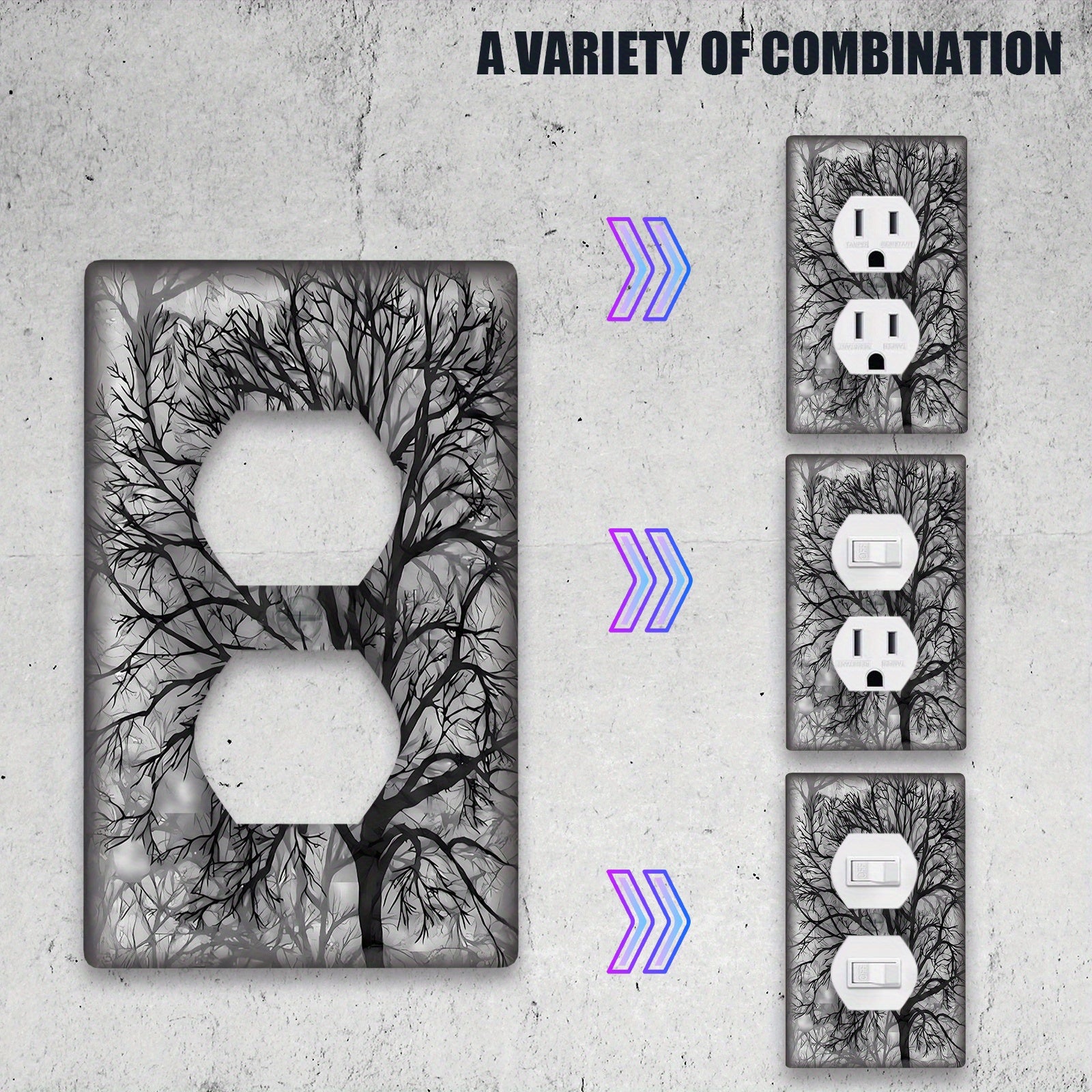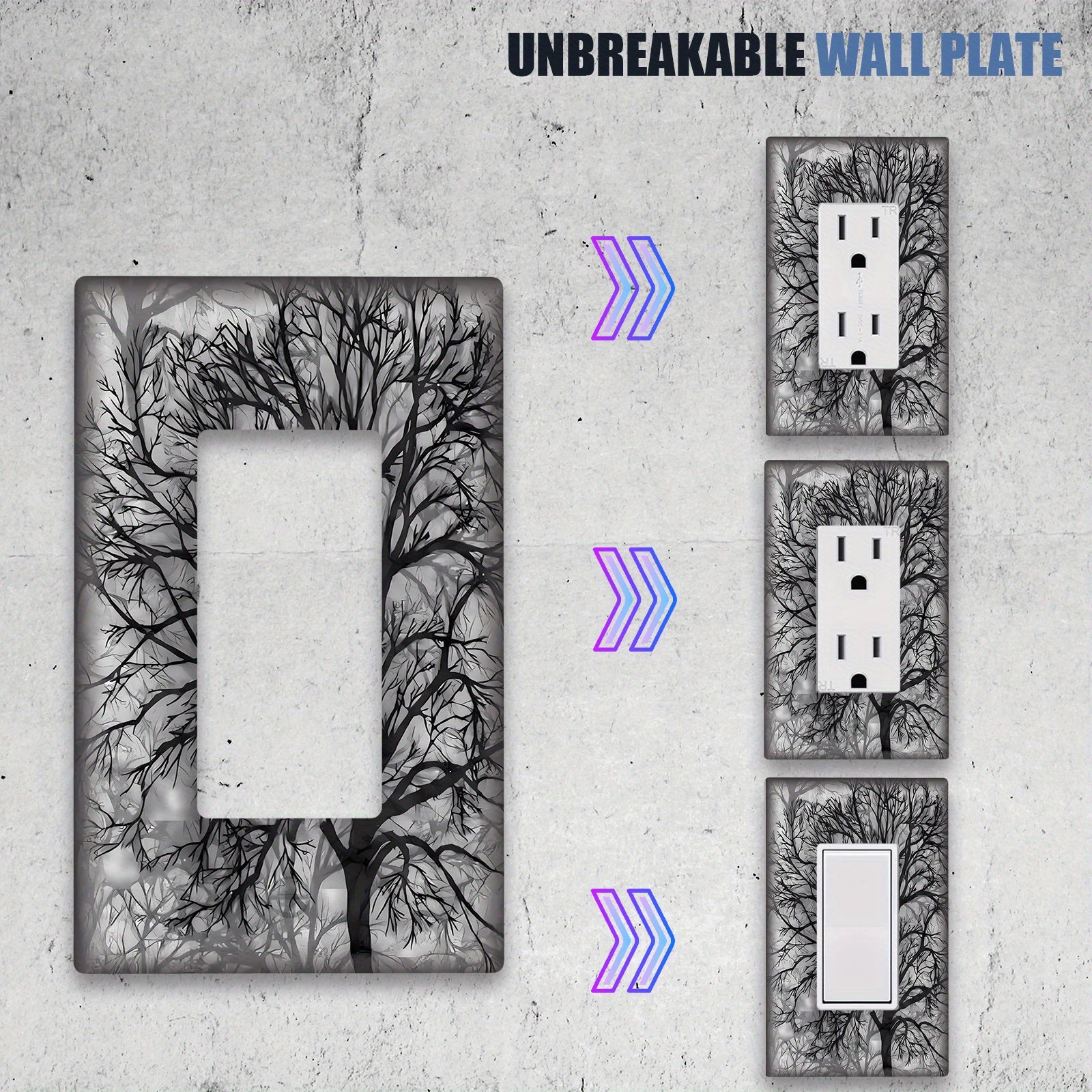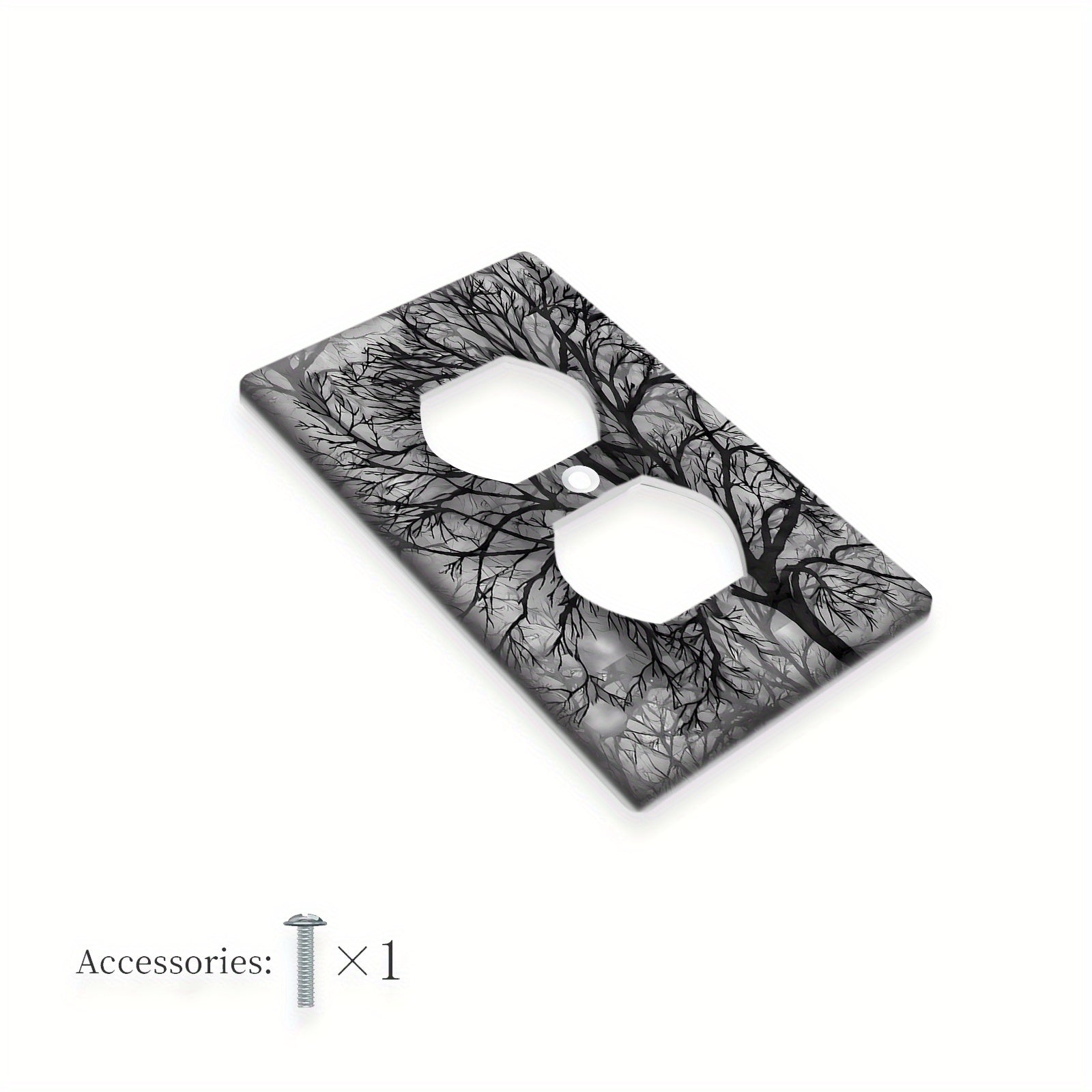 Cubierta de placa de interruptor con diseño de árbol en negro y gris para placa de pared de 1 o 2 gang