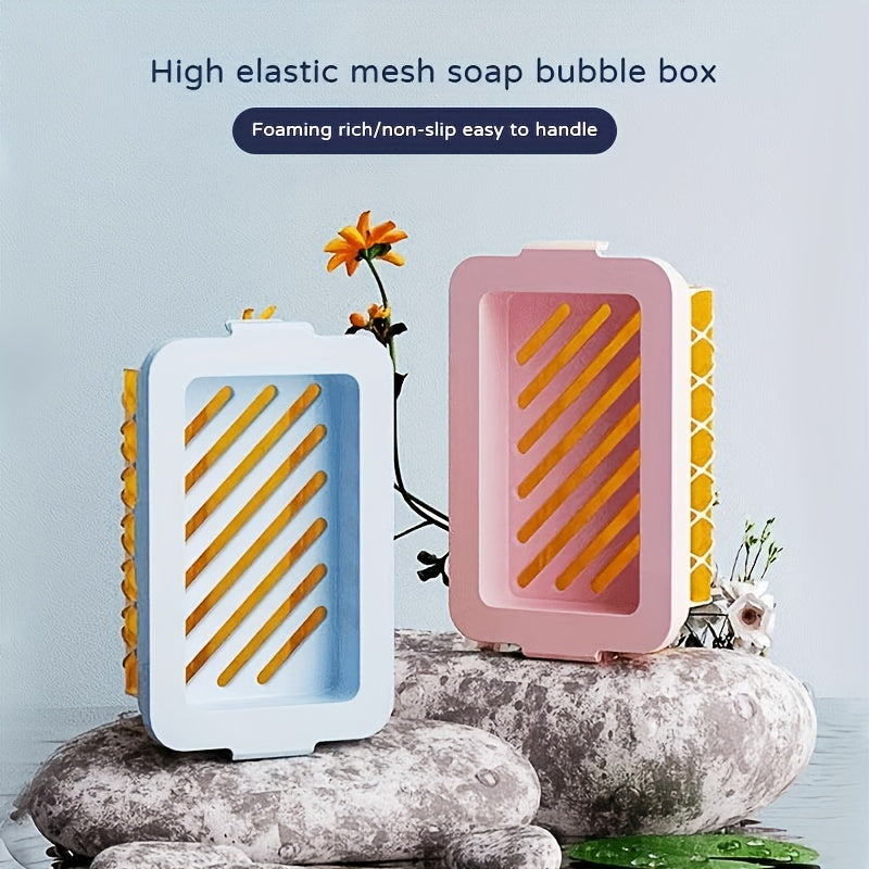Ahorra jabón multifuncional con red de espuma para limpieza y almacenamiento Azul Rosa