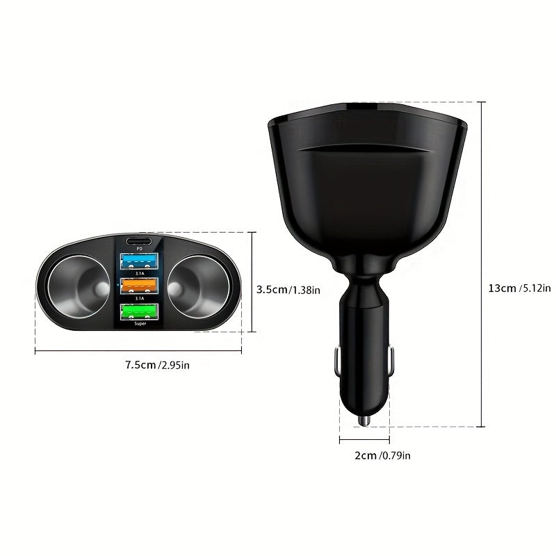 Cargador de coche multi-puerto con carga rápida, adaptador USB para teléfono y tableta