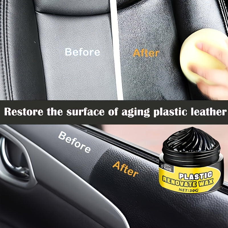 Cera de restauración de autos multiusos para partes plásticas, brillo de neumáticos, vehículos negros