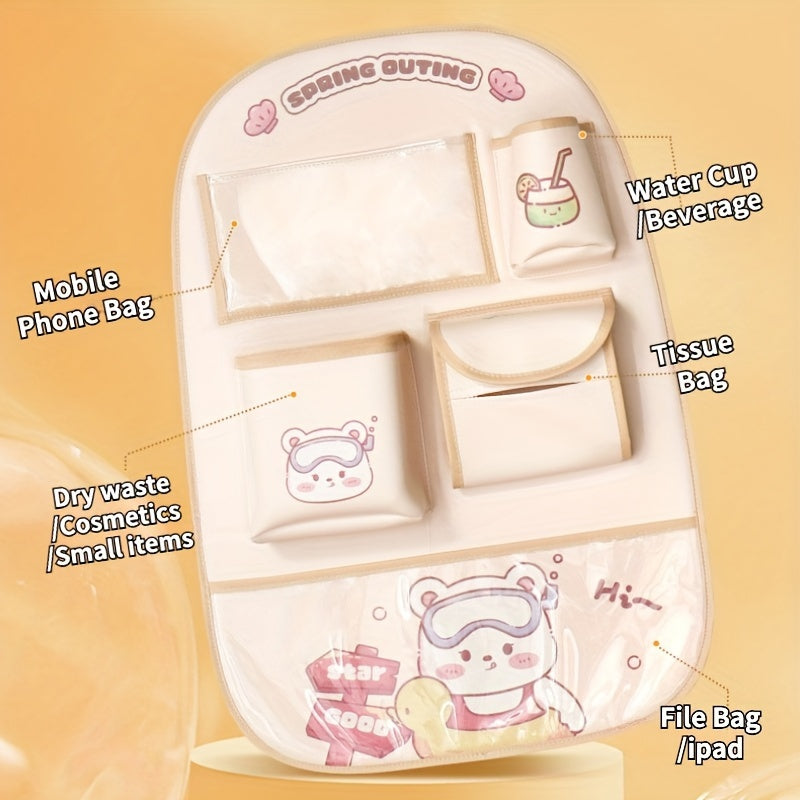 Organizador de asiento de coche multifuncional con diseño de dibujos animados para accesorios de viaje