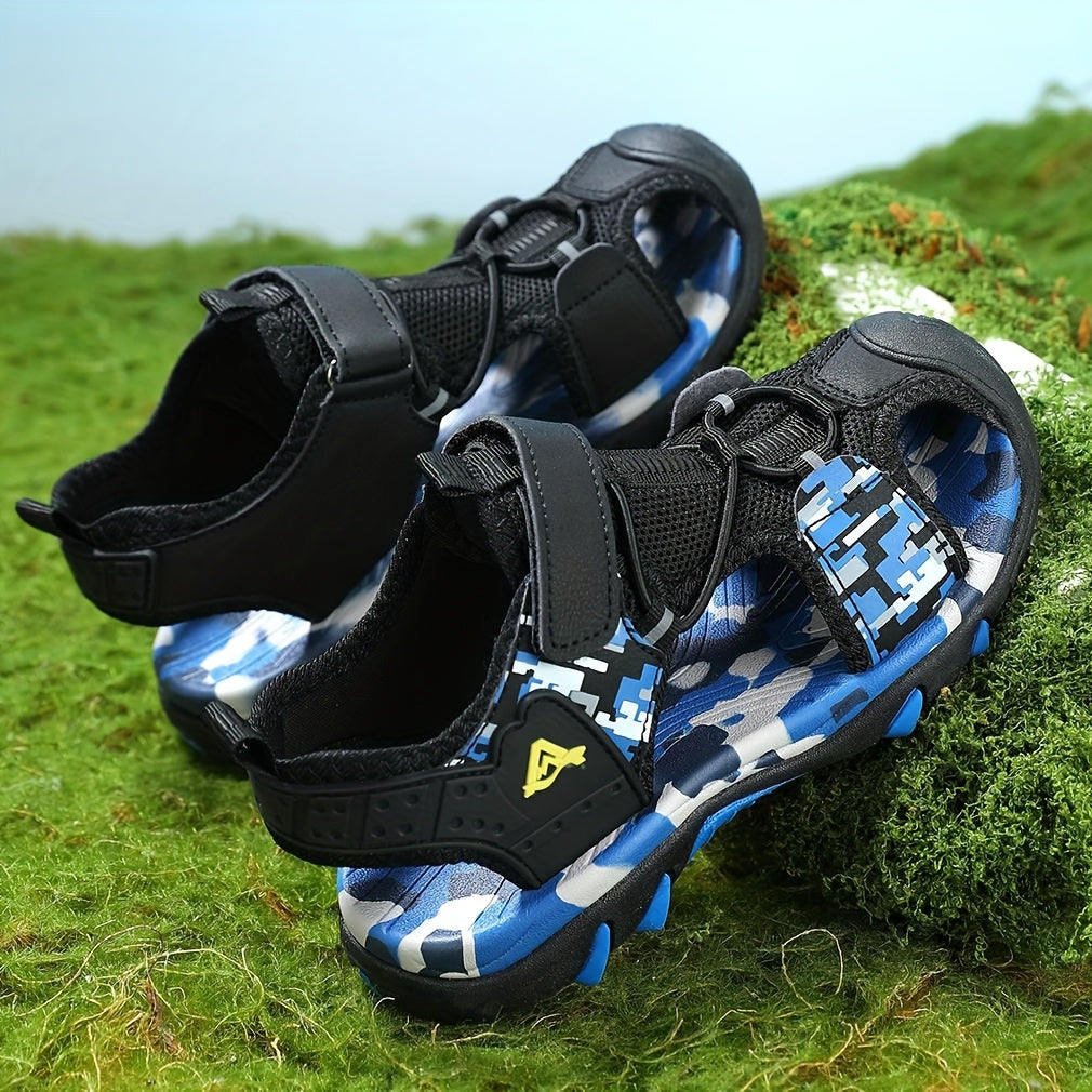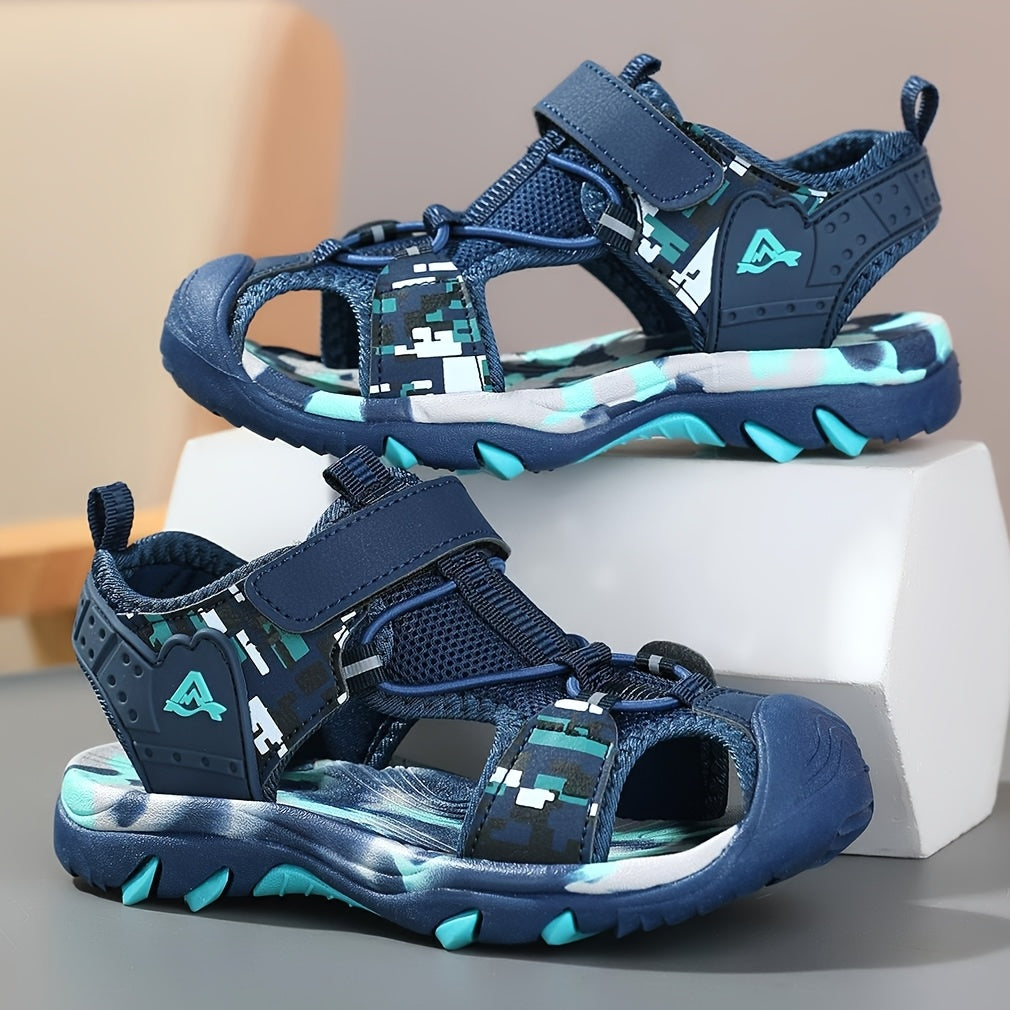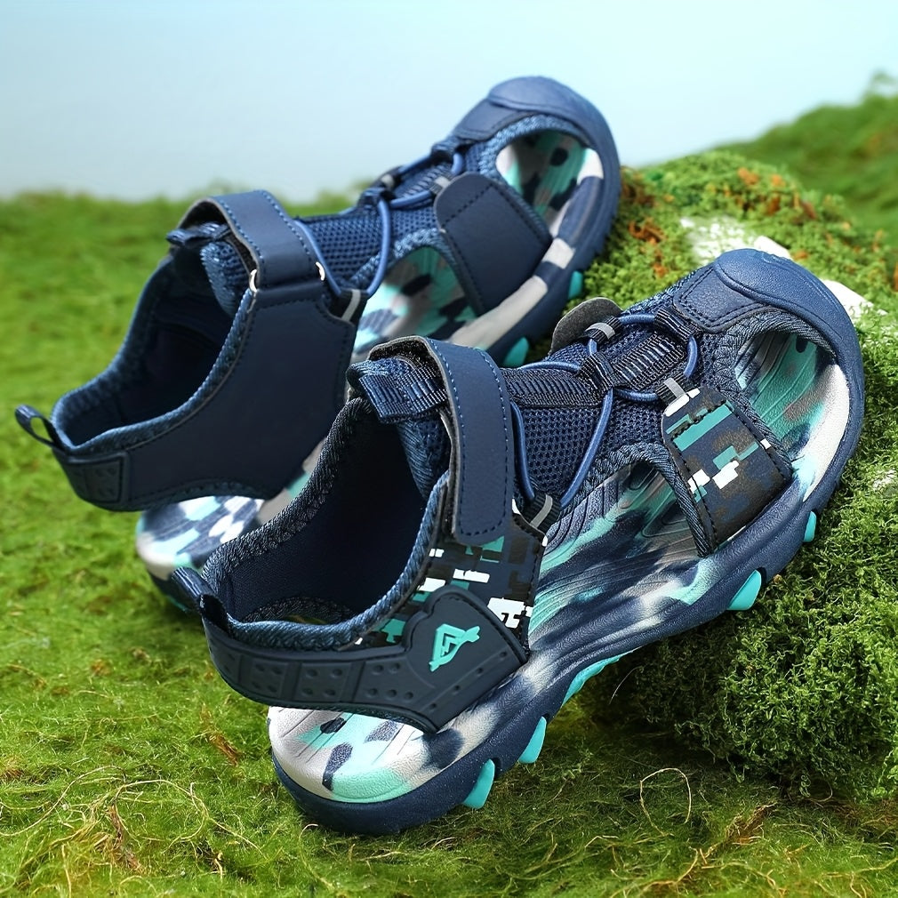 Sandalias deportivas casuales para niños con puntera redonda, cierre elástico y suela TPR