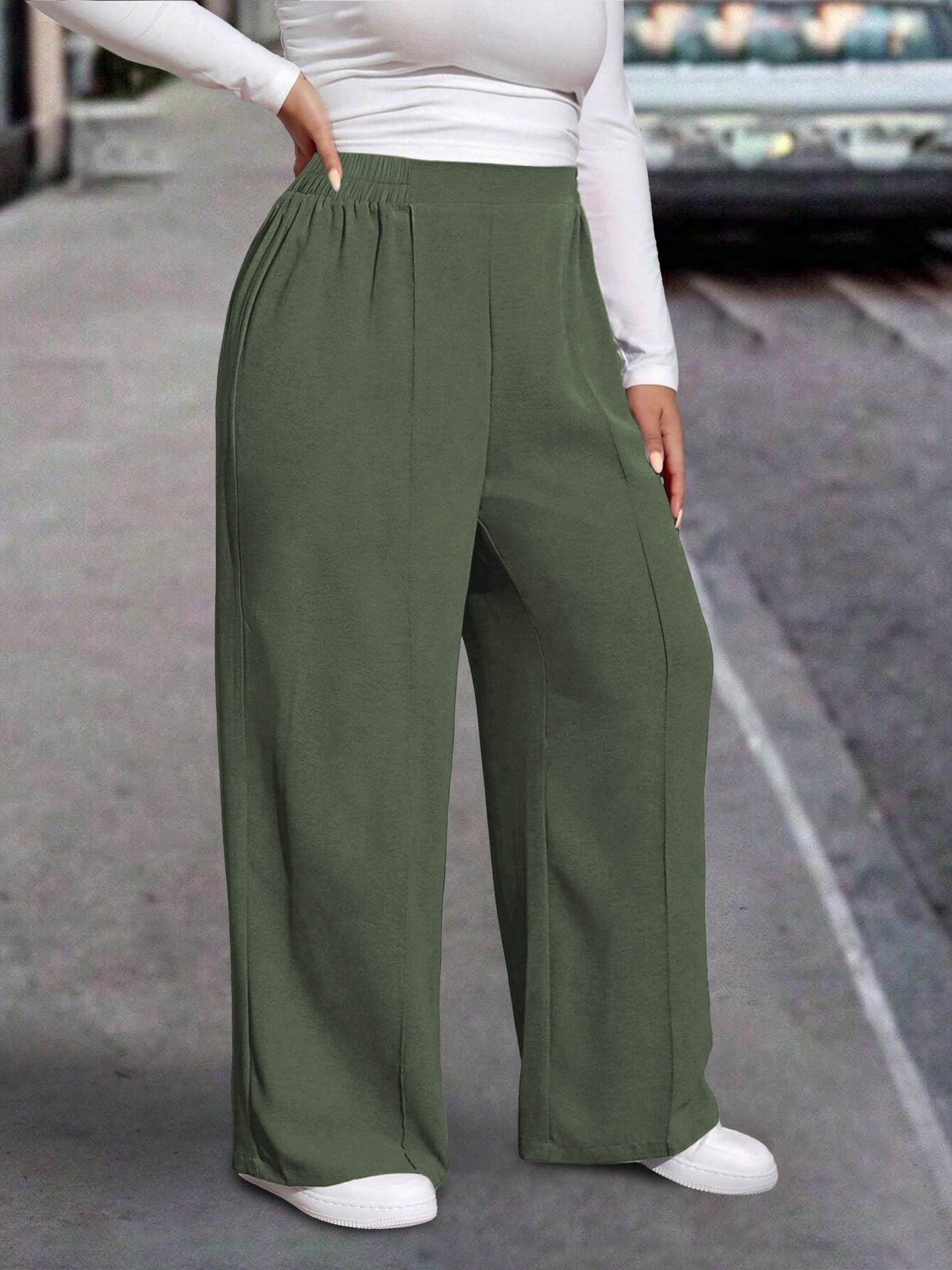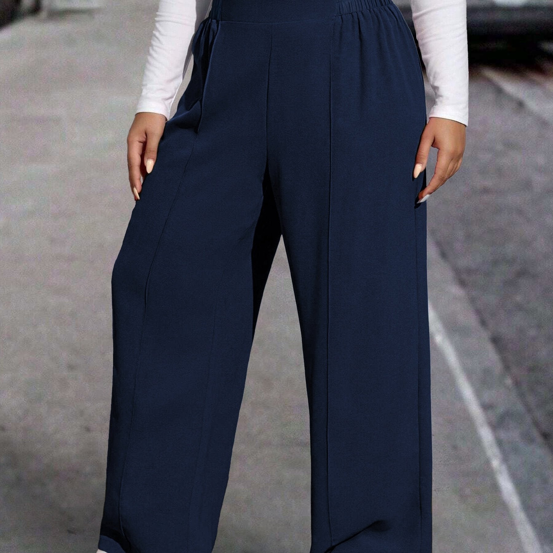 Pantalones de poliéster de pierna ancha para mujer, color sólido de otoño, ajuste extendido, cómodos y ligeros