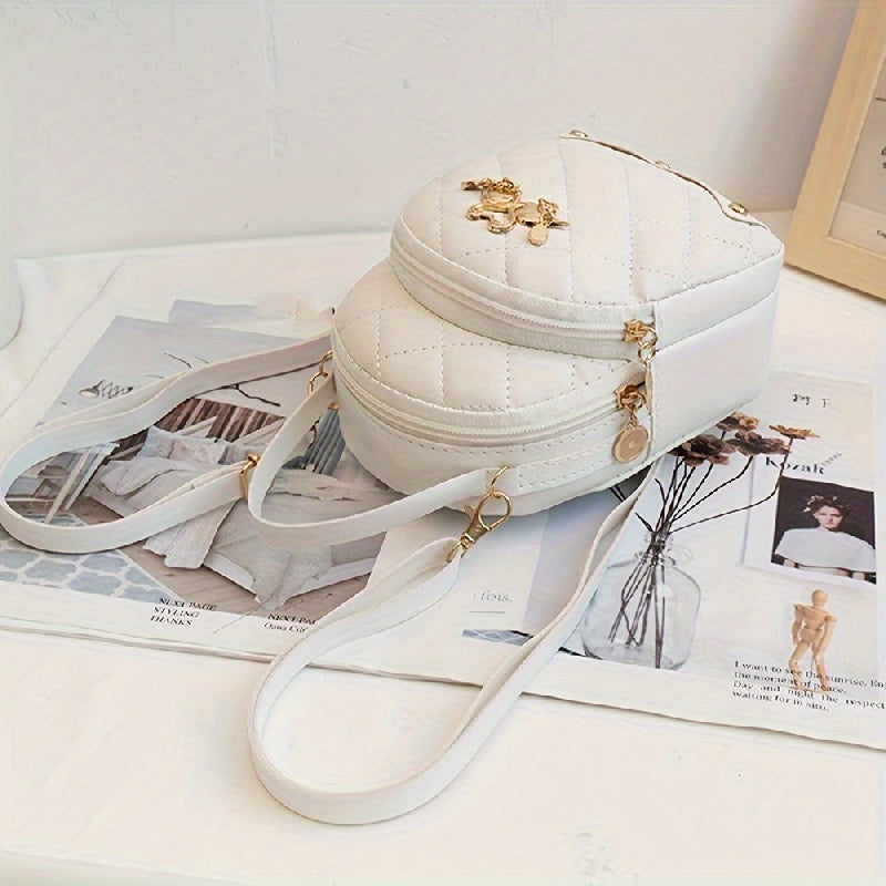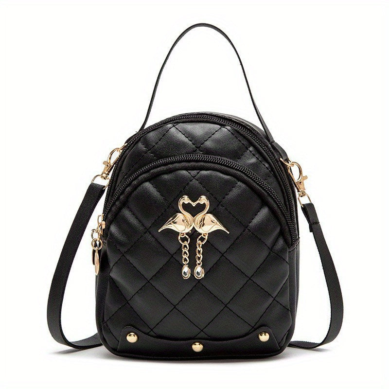 Mochila bordada con diseño Argyle a la moda, cierre de cremallera y correa de hombro ajustable