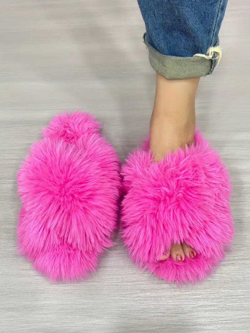 Zapatillas de felpa para mujer con tiras cruzadas, cálidas y cómodas para interior, ideales para otoño e invierno