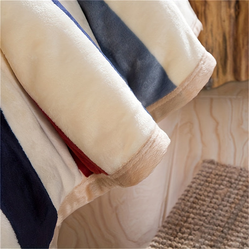 Manta de cama de franela con patrón a rayas para adultos y niños
