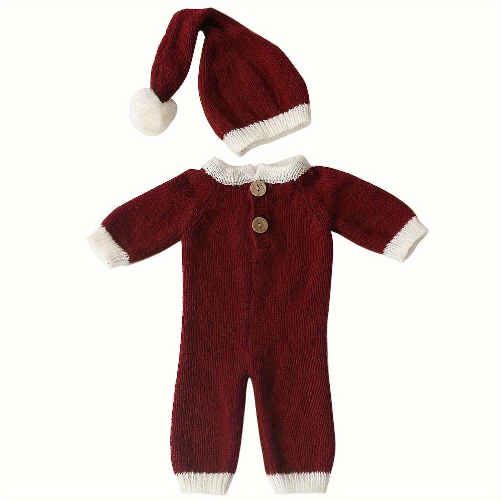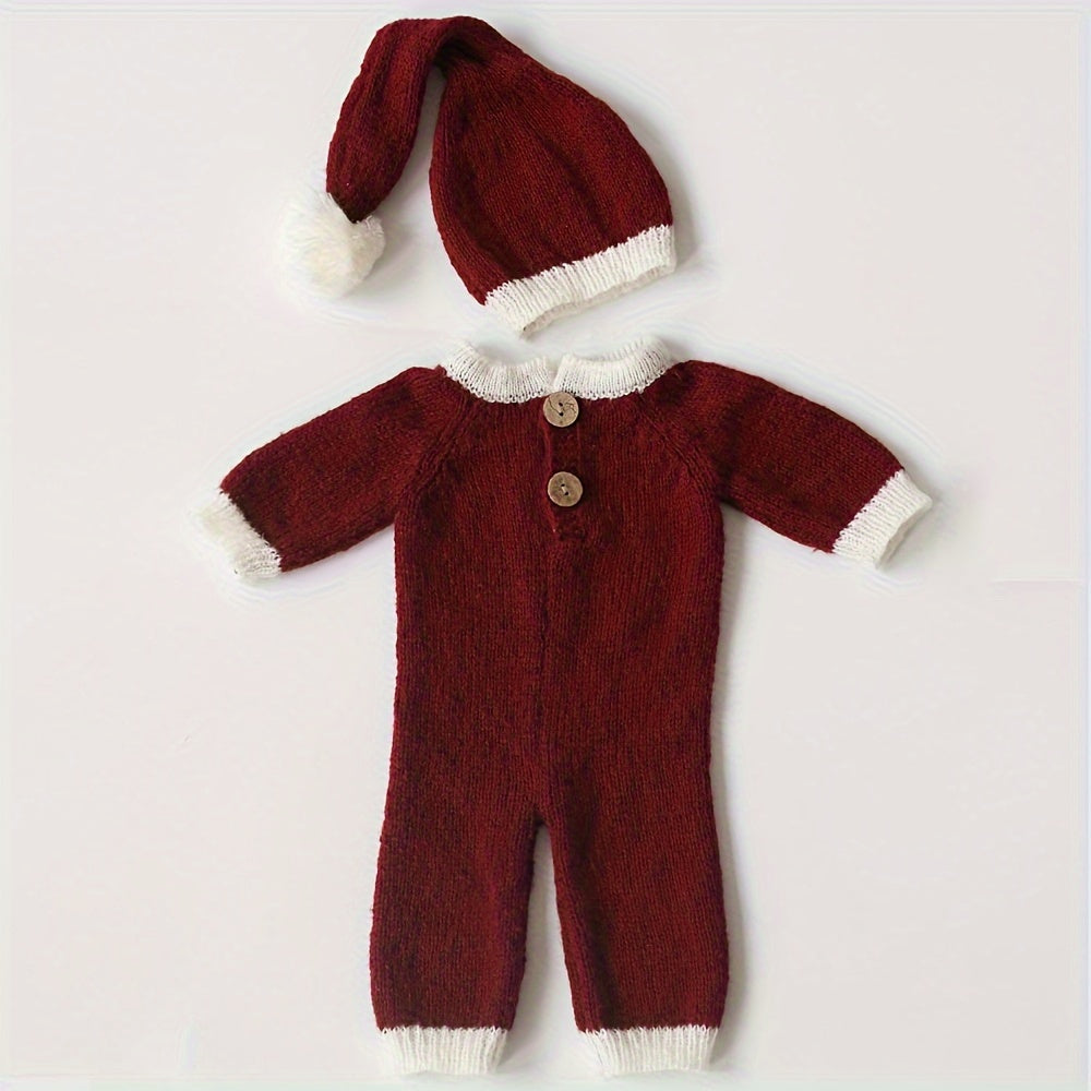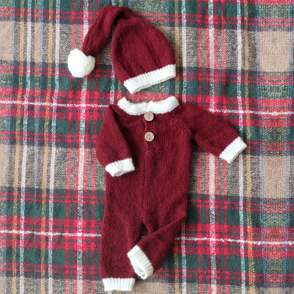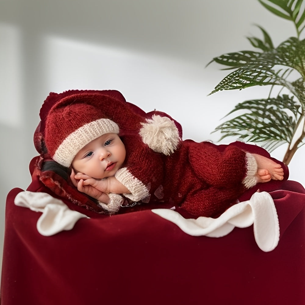 Conjunto de gorro y pelele para fotografía navideña de recién nacido