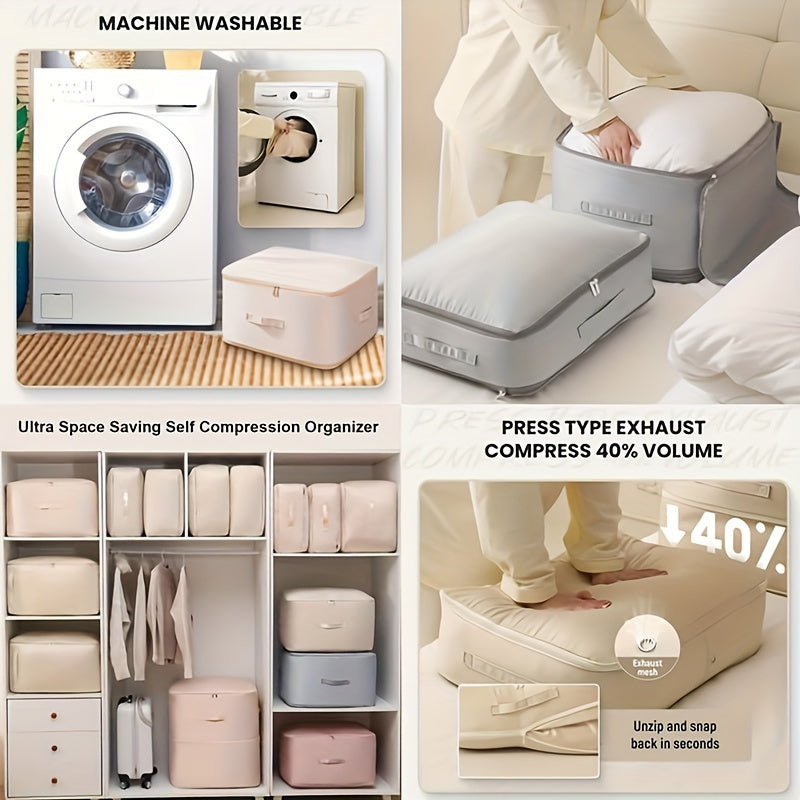 Bolsa de almacenamiento de nylon de autocompresión con cremallera para edredones, ropa y mantas, ahorrador de espacio, organizador de alta resistencia