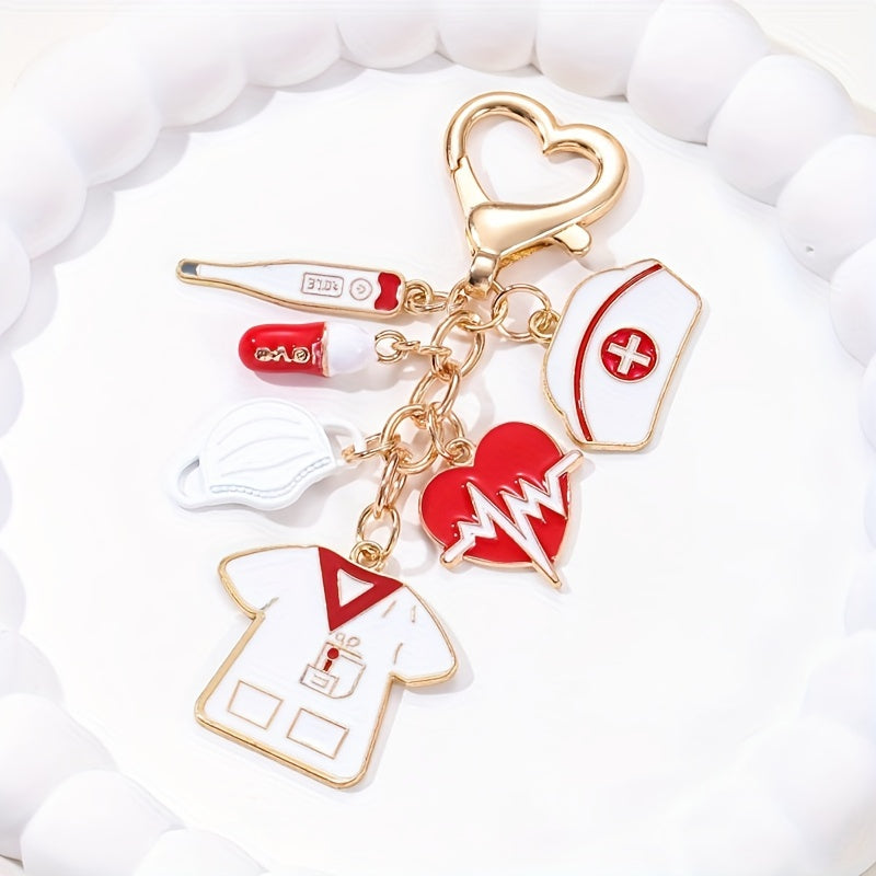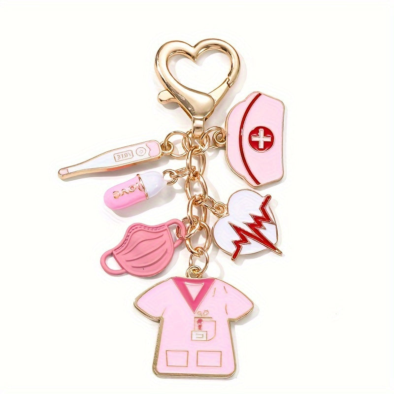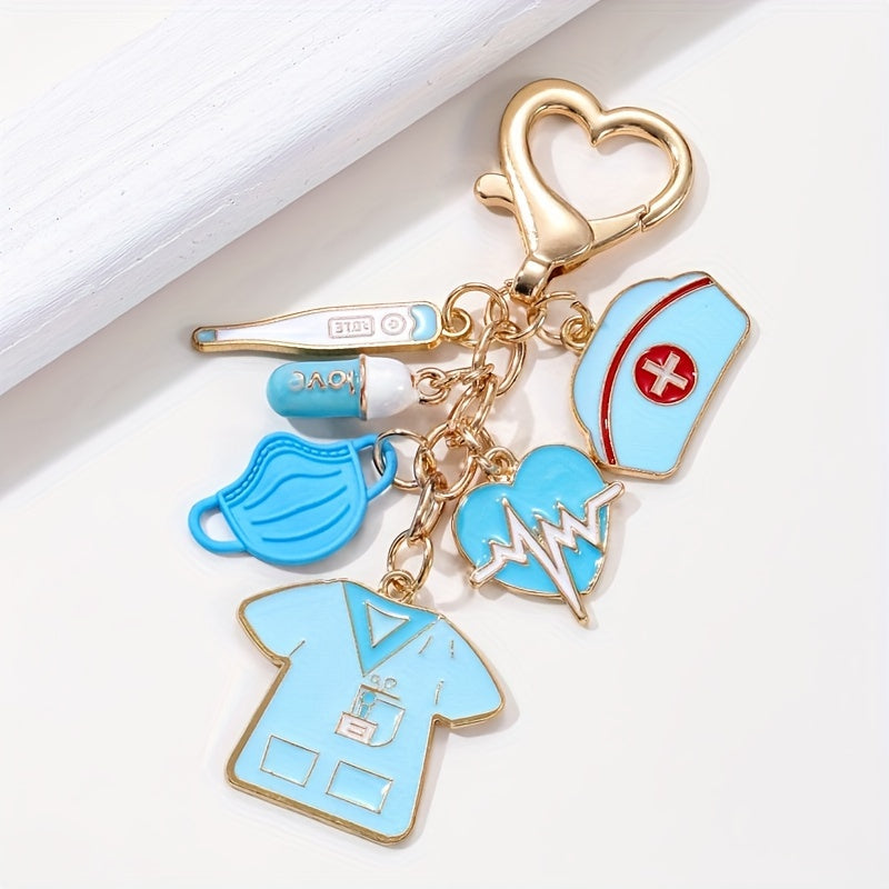 Set de kit de enfermera con gorra, termómetro, máscara de pastillas, estetoscopio, traje, cuentagotas, llavero
