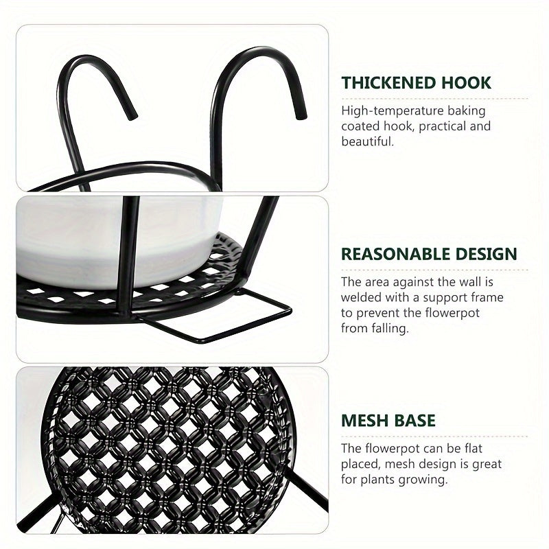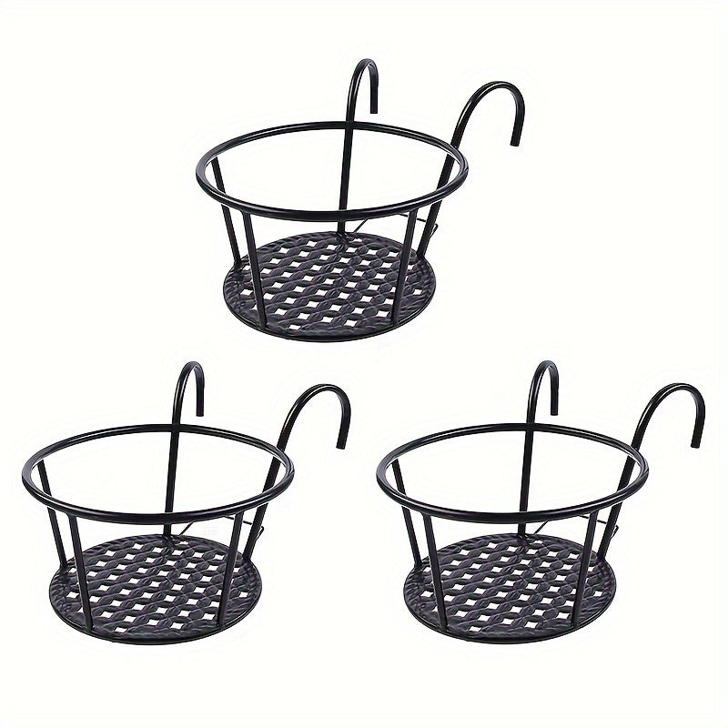 Juego de 3 macetas colgantes de hierro negro con ganchos para barandilla de balcón