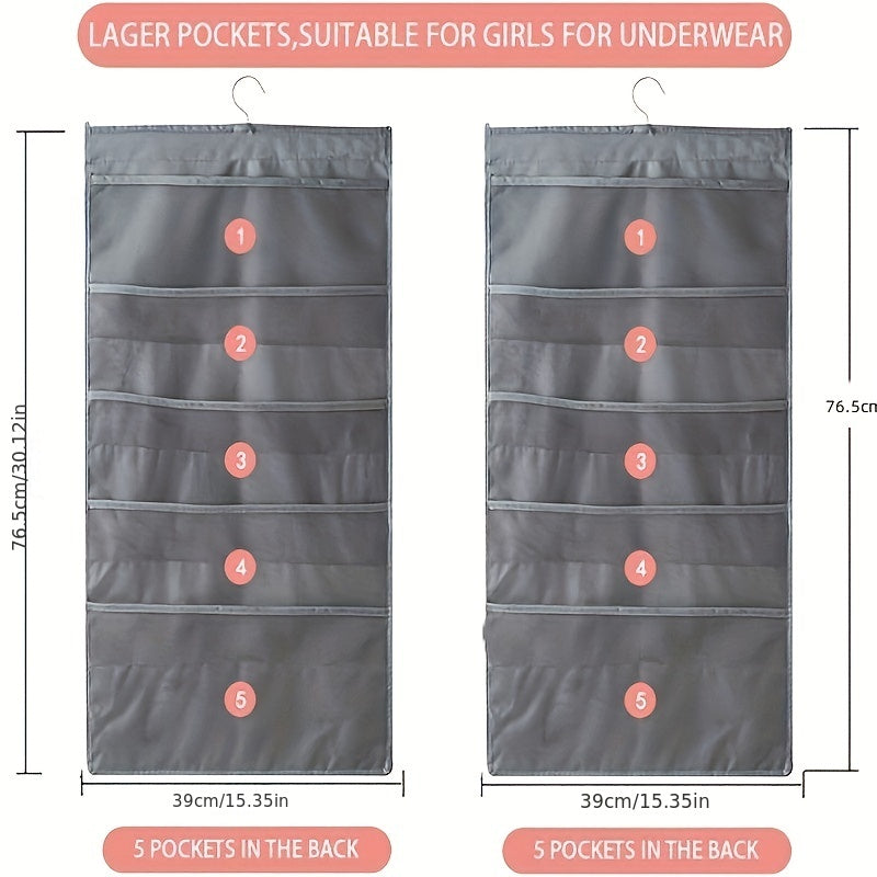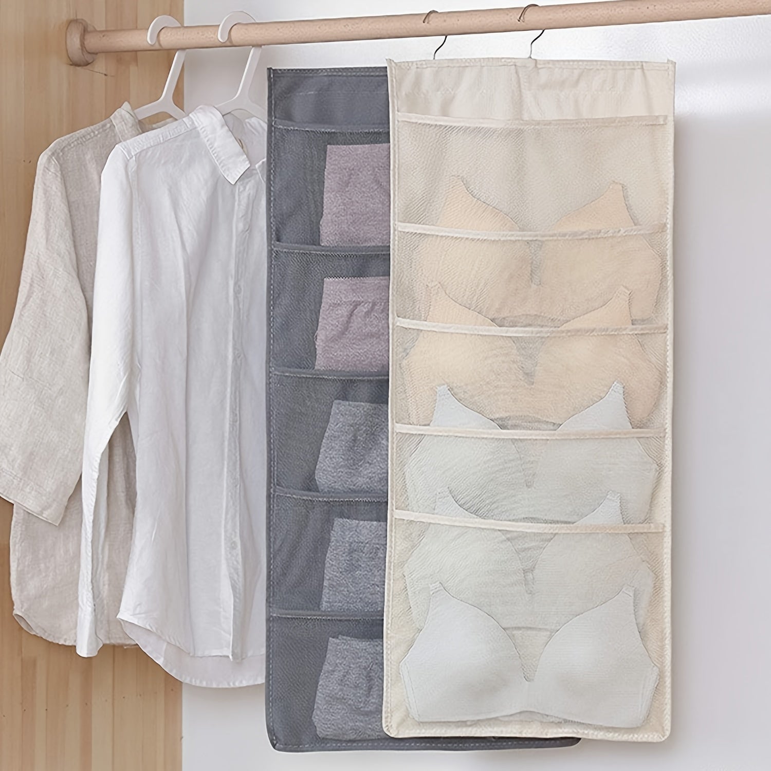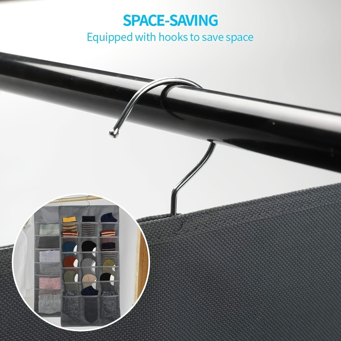 Organizador de armario de doble cara con bolsillos de malla y colgador giratorio para almacenamiento que ahorra espacio
