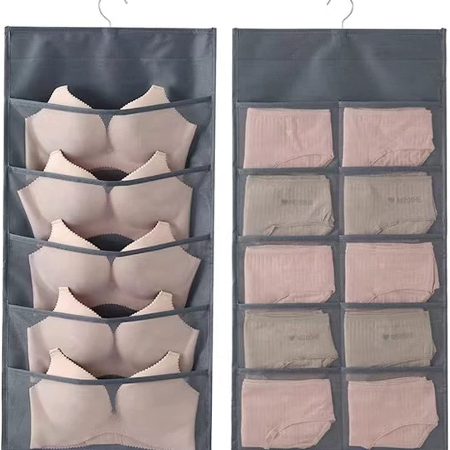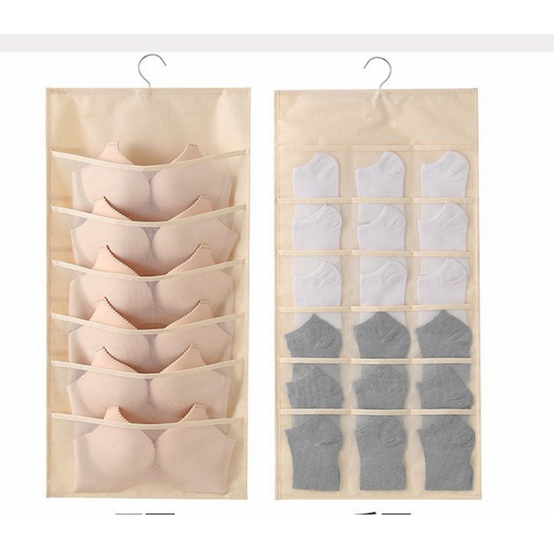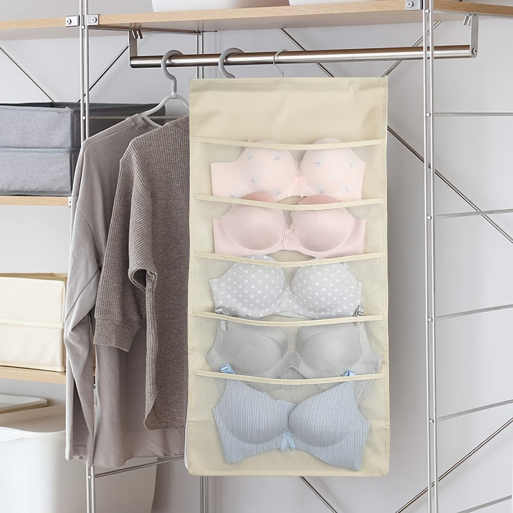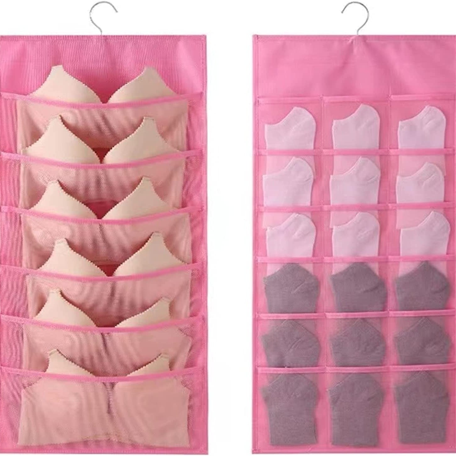 Organizador de armario de doble cara con bolsillos de malla y colgador giratorio para almacenamiento que ahorra espacio