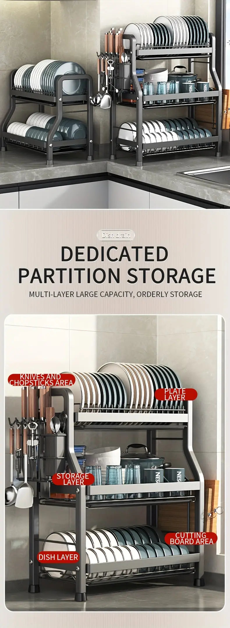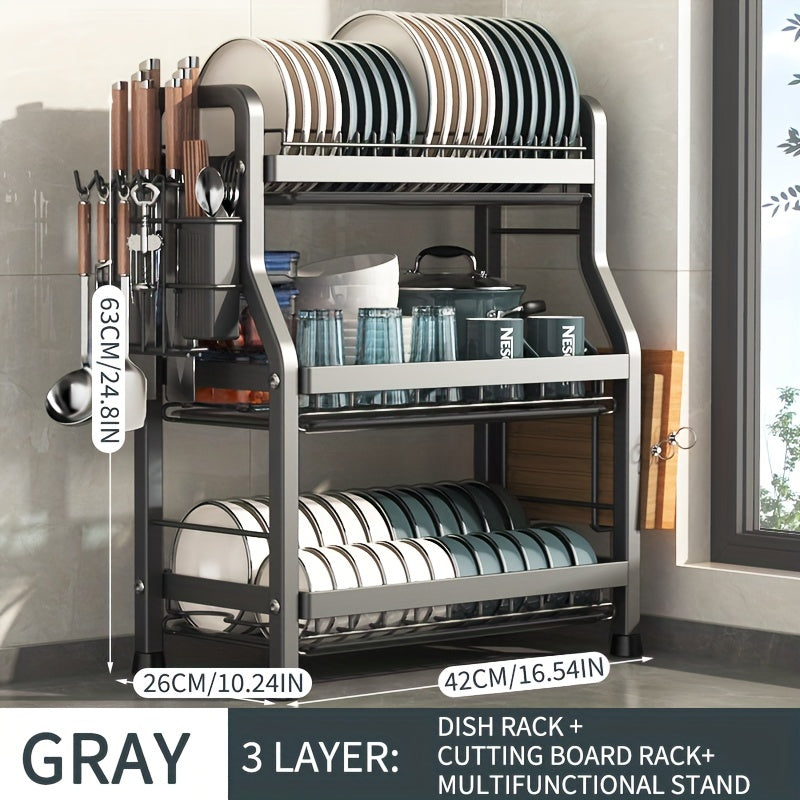 Estante de secado de platos de cocina de una pieza con soporte para tabla de cortar, organizador de utensilios, gran capacidad, a prueba de óxido, gris