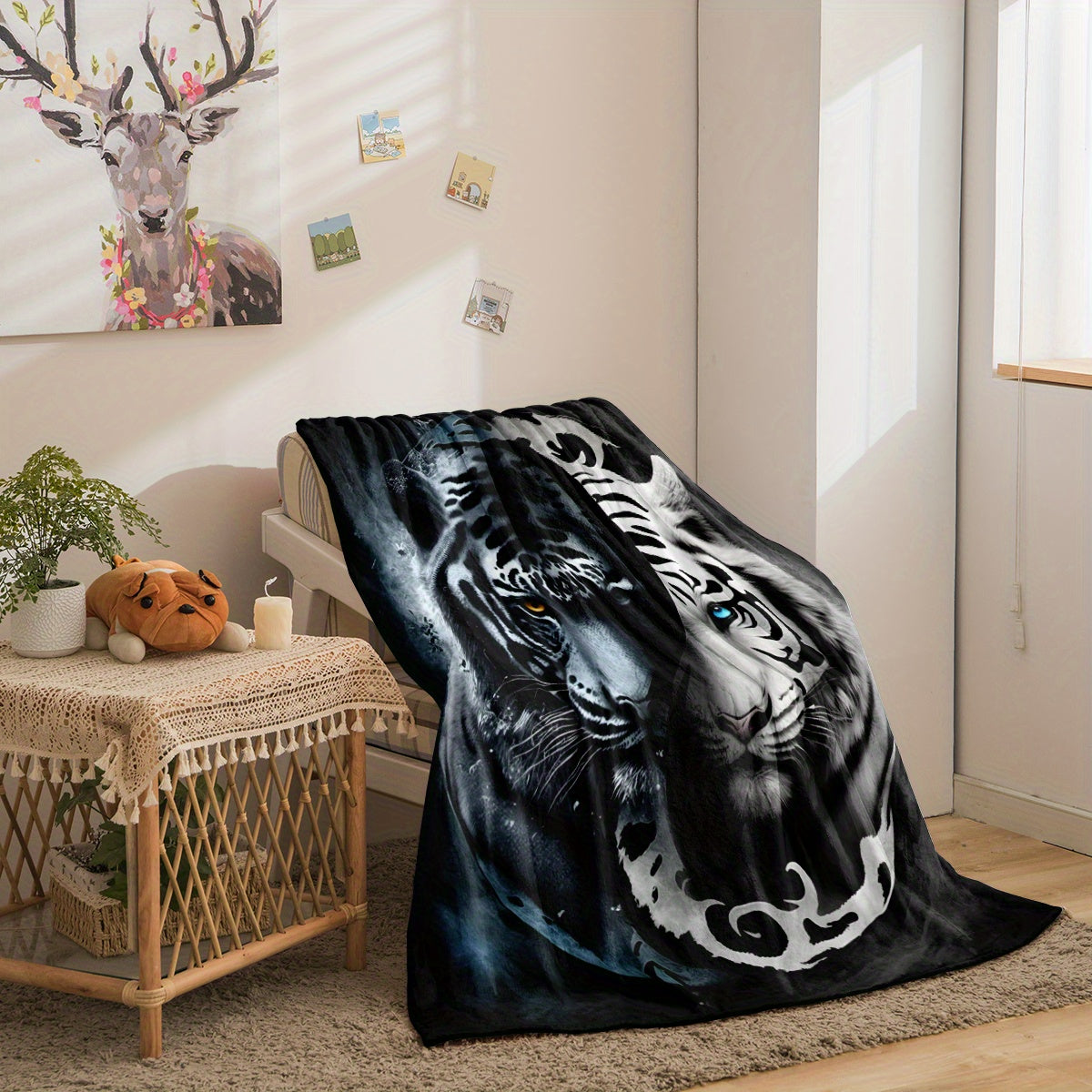Manta de felpa 3D Yin Yang Tigre de poliéster suave para todas las estaciones, para sofá y cama