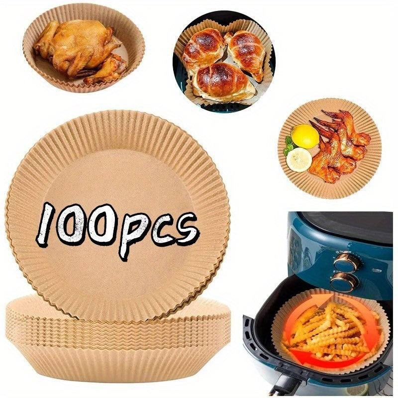 Paquete de 100 bases de papel para freidora de aire, hojas de pergamino desechables, antiadherentes, resistentes a la grasa