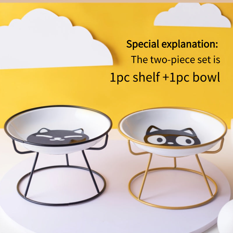 Juego de 2 cuencos de cerámica para alimentar gatos, con patrón de dibujos animados, para uso en el hogar